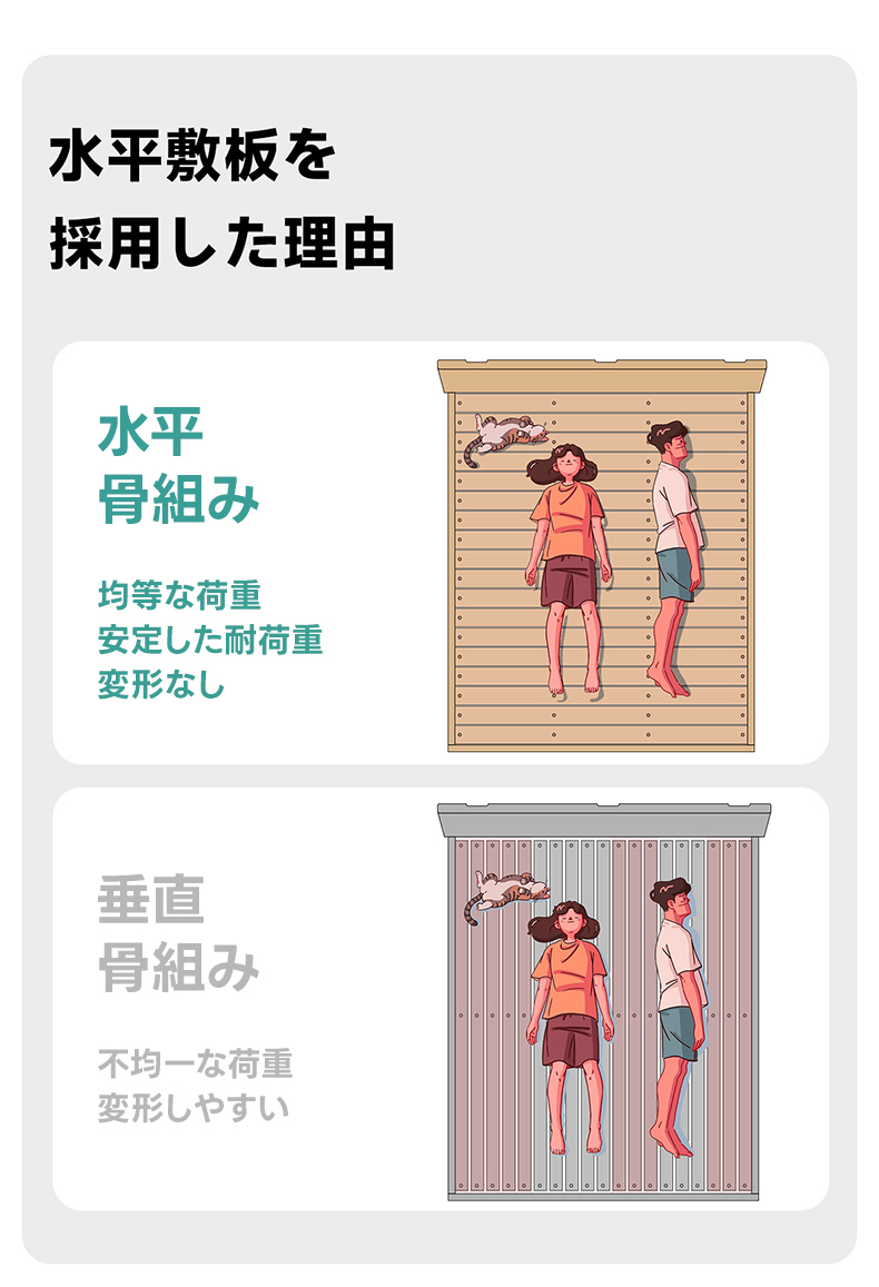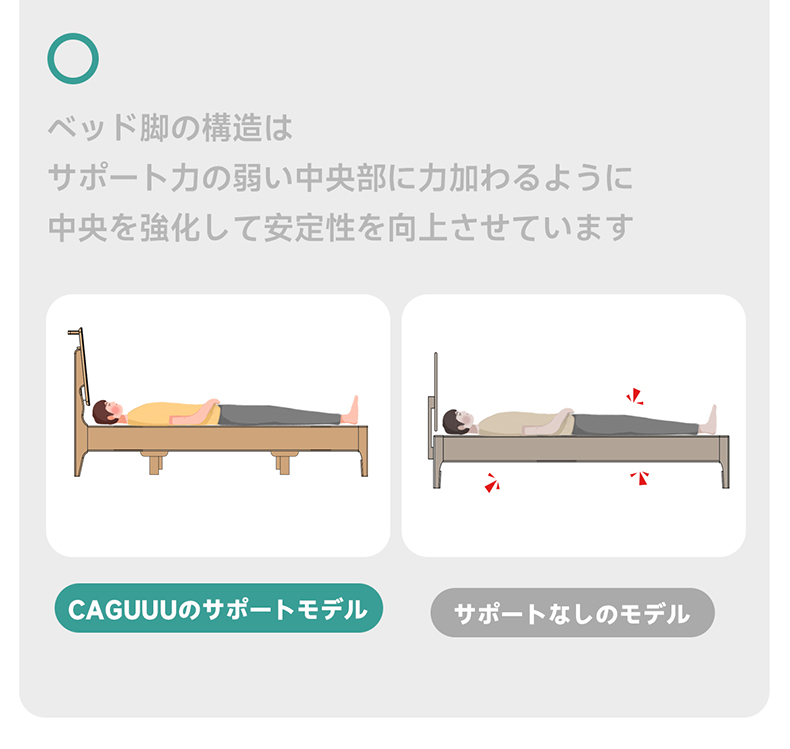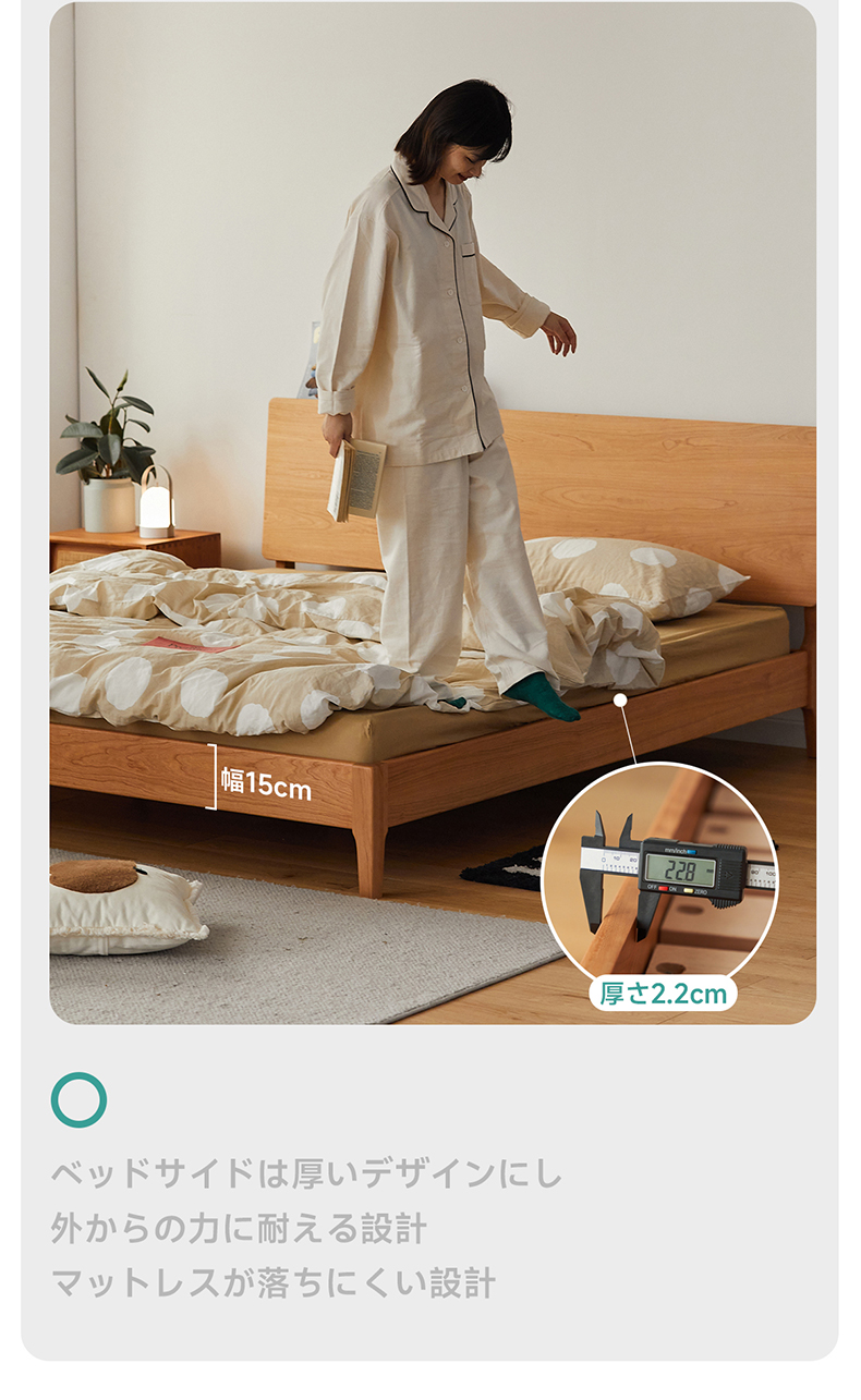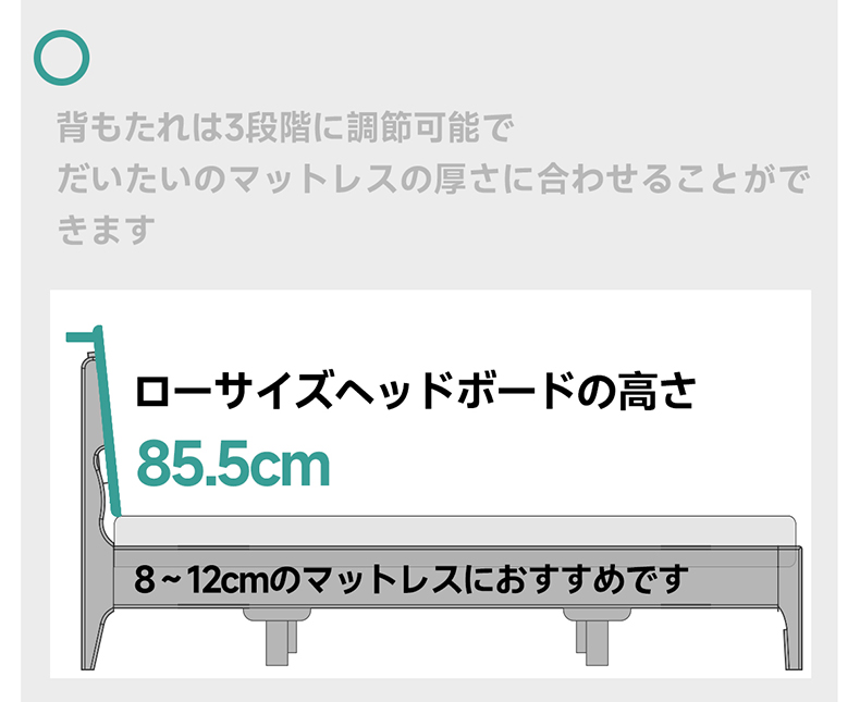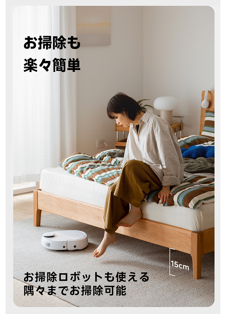 - 【便利な収納スペースと簡単なお手入れ】:ベッド下には17cmの高さの収納スペースがあり、ヘッドボード背面にも便利な収納スペースを備えています。お掃除ロボットも使用可能な高さで、隅々まで簡単に掃除ができます。
