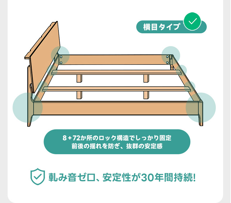 - 【頑丈なフレームと優れた耐久性】:10cm幅のブナ板と72本のネジでしっかりと固定されたフレーム構造により、30年間の安定性と耐久性を保証します。長く安心してご使用いただけます。