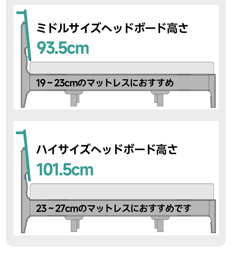 - 【快適なヘッドボードと静音設計】:50cm幅のヘッドボードは快適さを追求したデザインで、寝る際の安心感を提供します。さらに、静音バー付きで、寝返りを打っても音が気になりません。