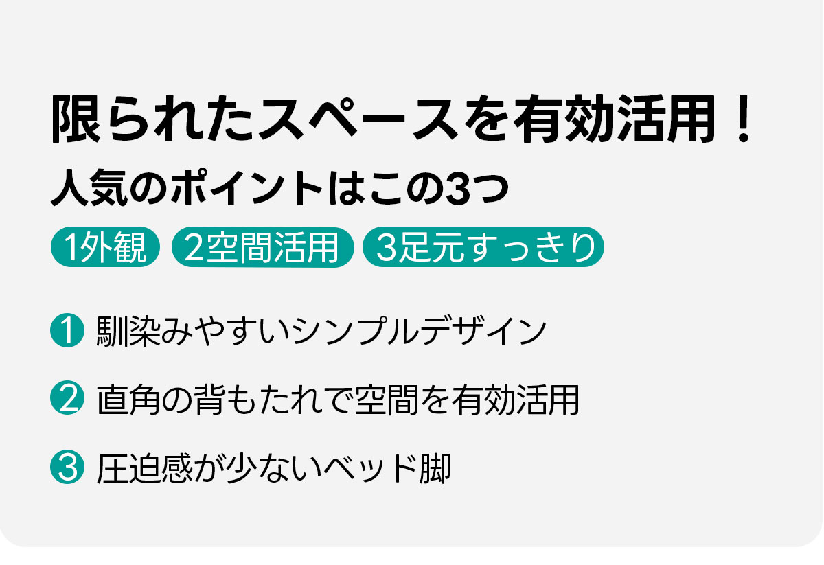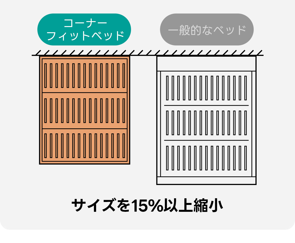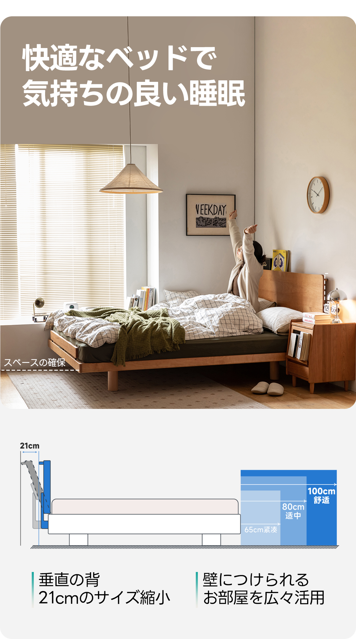 - 【省スペース設計】コーナーフィットデザインにより、無駄なスペースを15%以上カット。狭い部屋でも有効に活用でき、快適な睡眠環境を提供します。