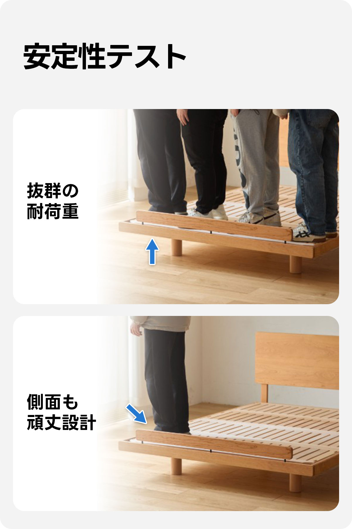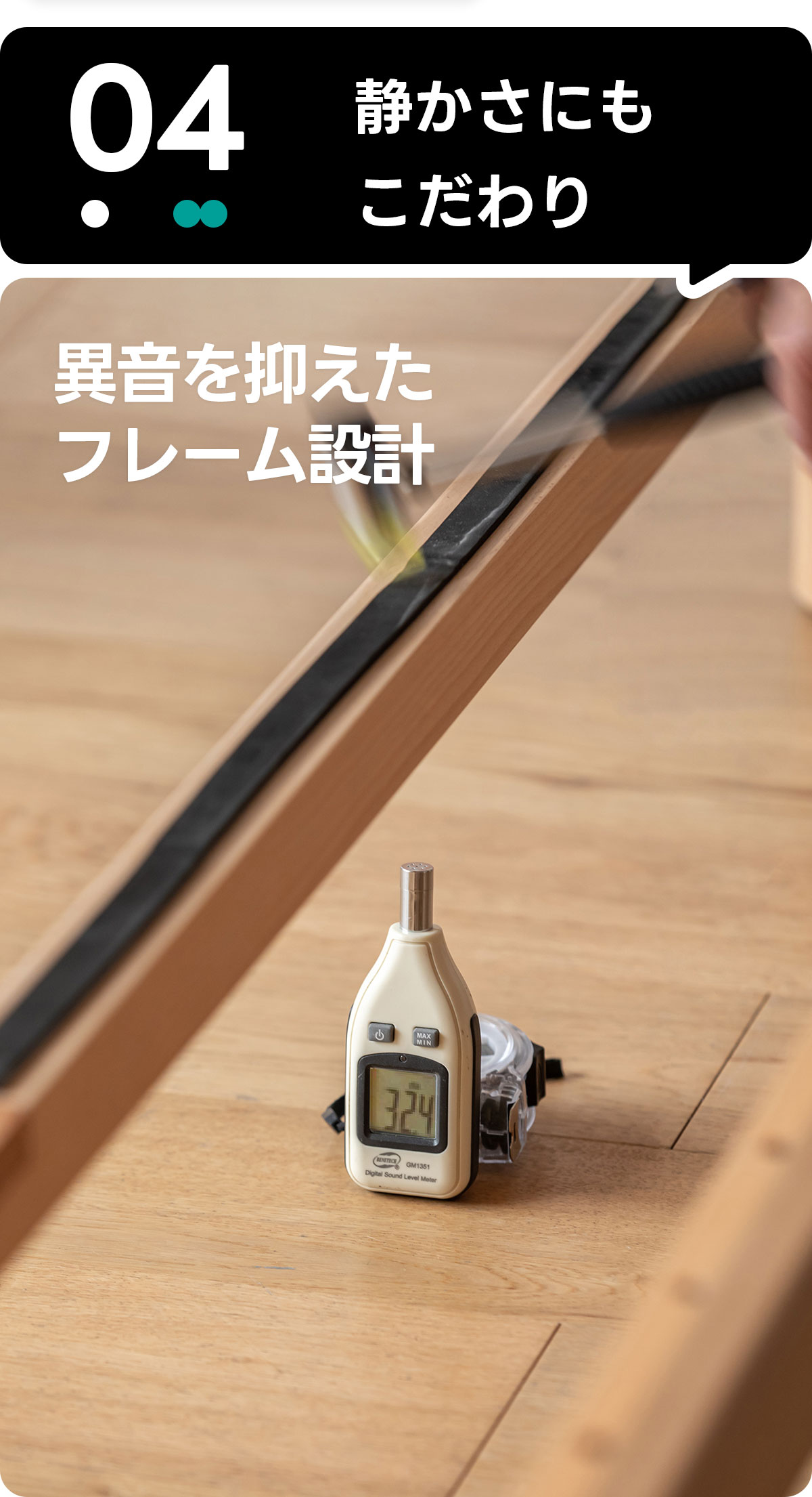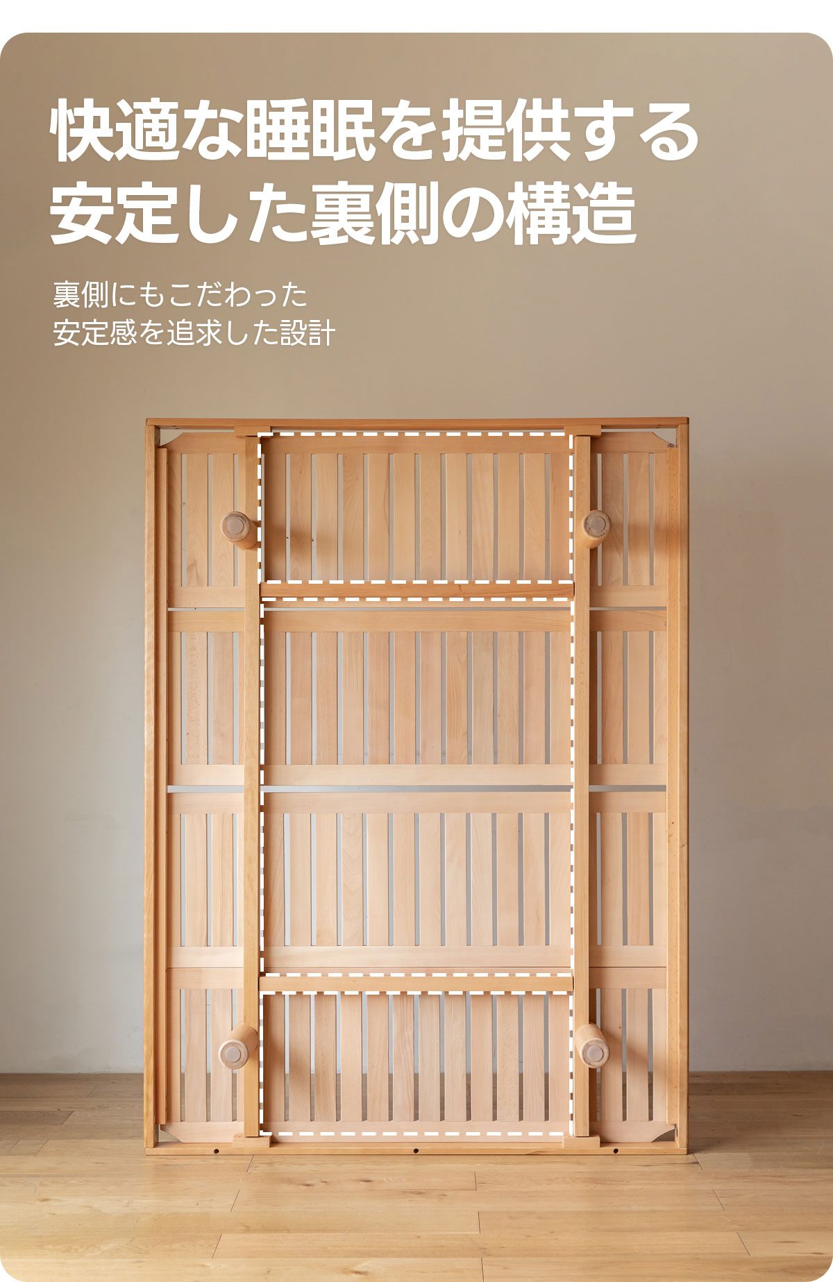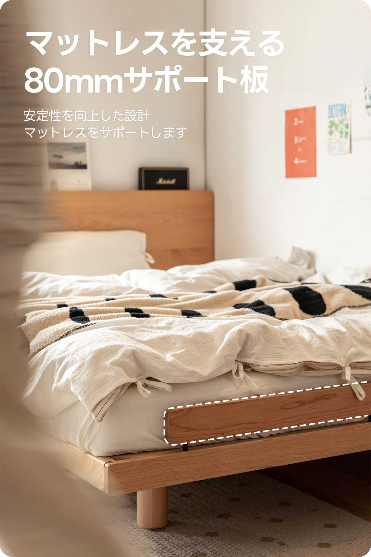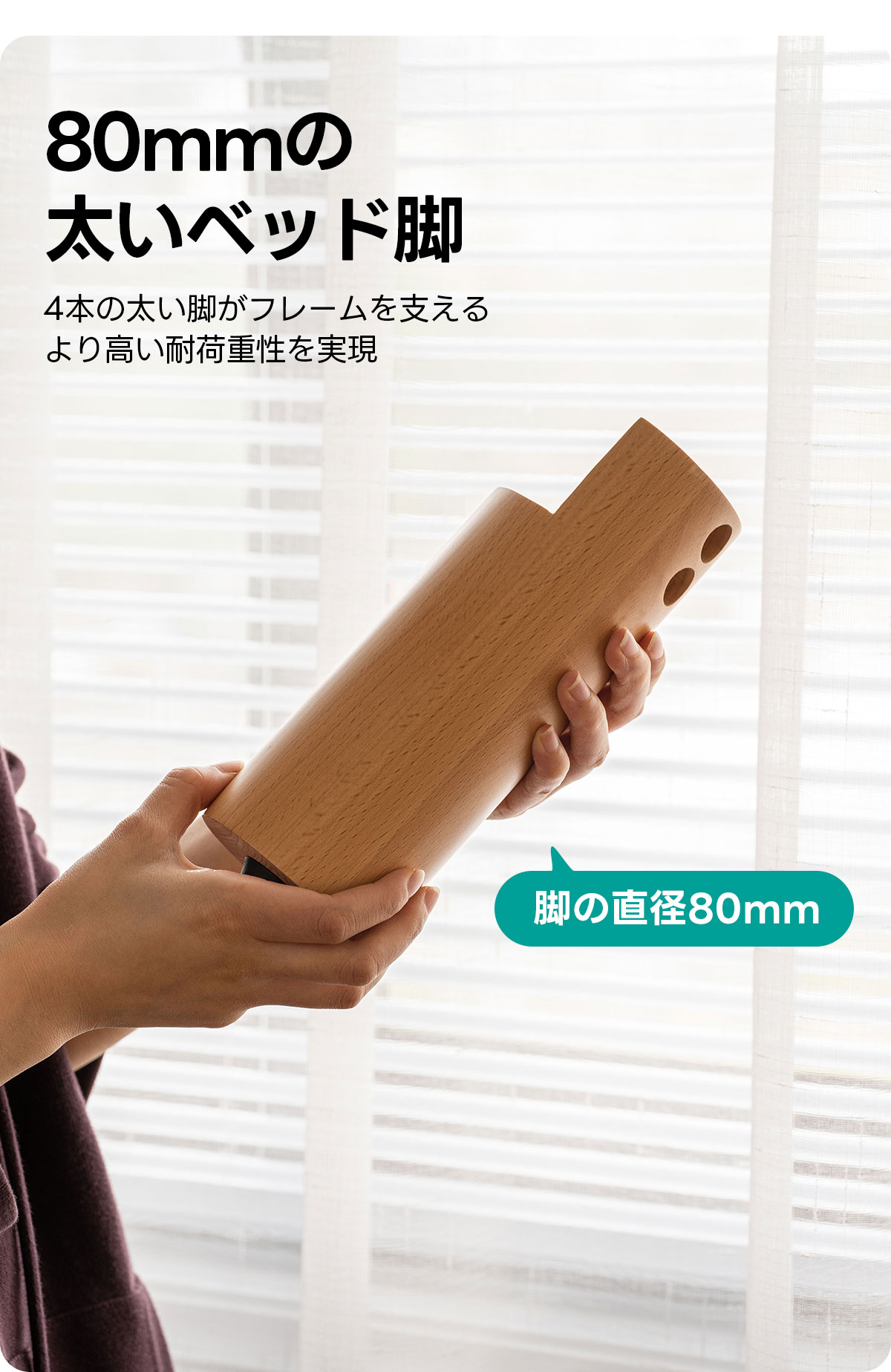 - 【安定性と静音設計】80mmの太いベッド脚と強化されたフレームで、抜群の安定性を実現。異音を抑えたフレーム設計で、静かな睡眠環境を提供します。