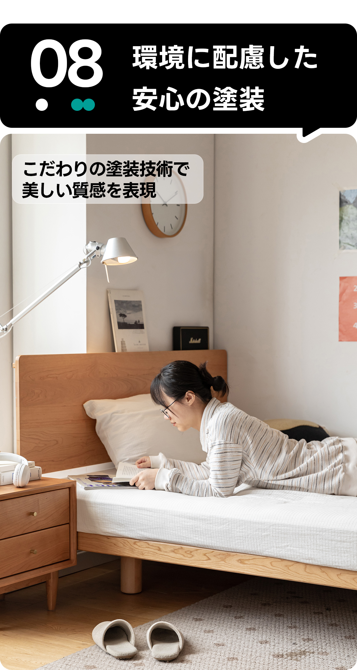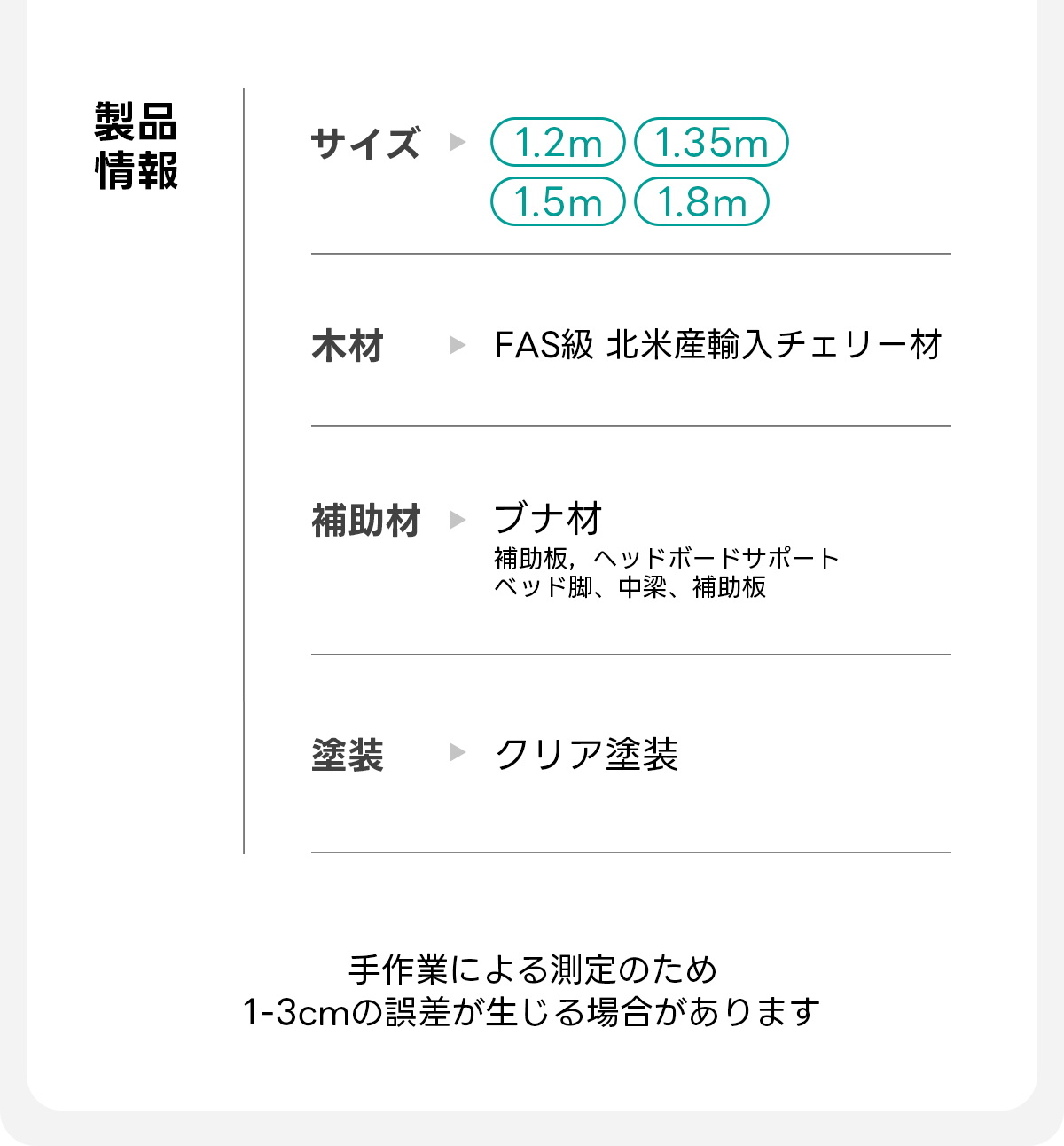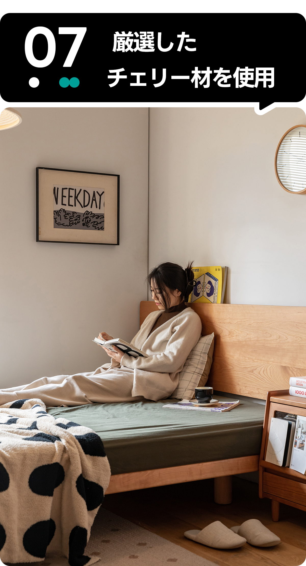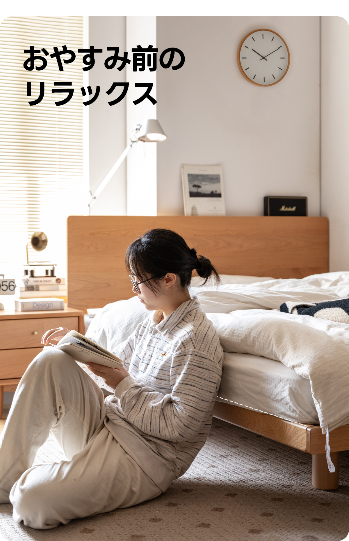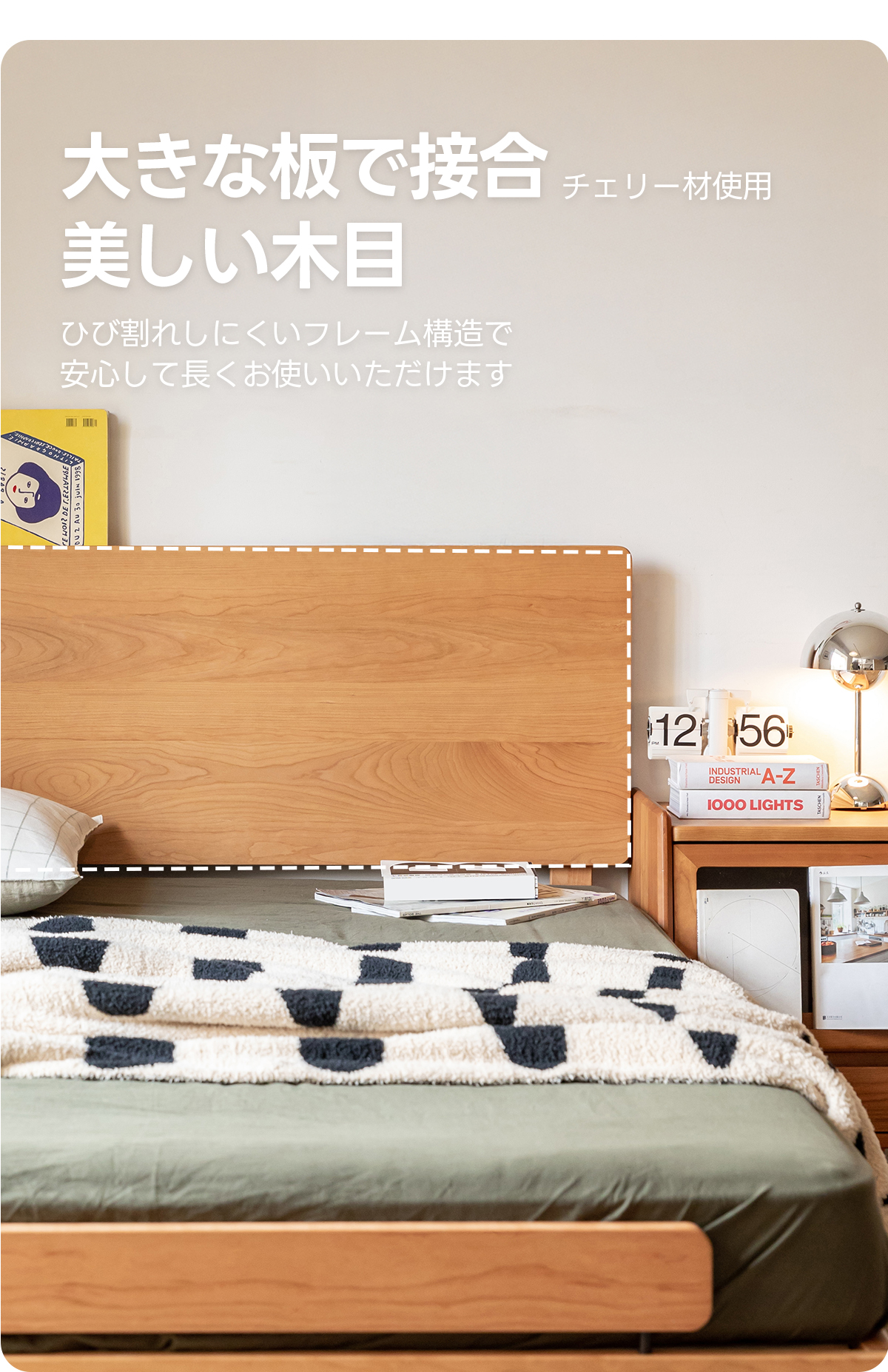 - 【高級素材とデザイン】このベッドは、SUP級の北米産チェリー材とFAS級のホワイトオークを使用し、高級感と耐久性を兼ね備えています。美しい木目が寝室にナチュラルで温かみのある雰囲気を演出します。