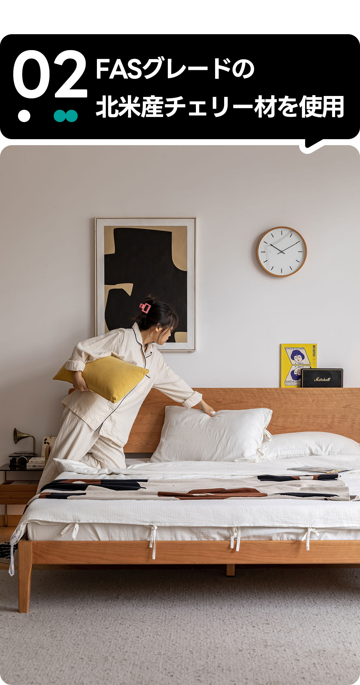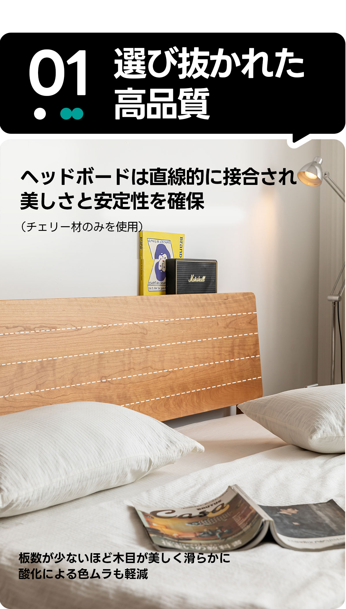 - 【高品質チェリー材使用】北米産FASグレードのチェリー材を使用し、耐久性と美しさを兼ね備えたヘッドボードは大きな一枚板で構成され、長期間にわたって美しい外観を保ちます。
