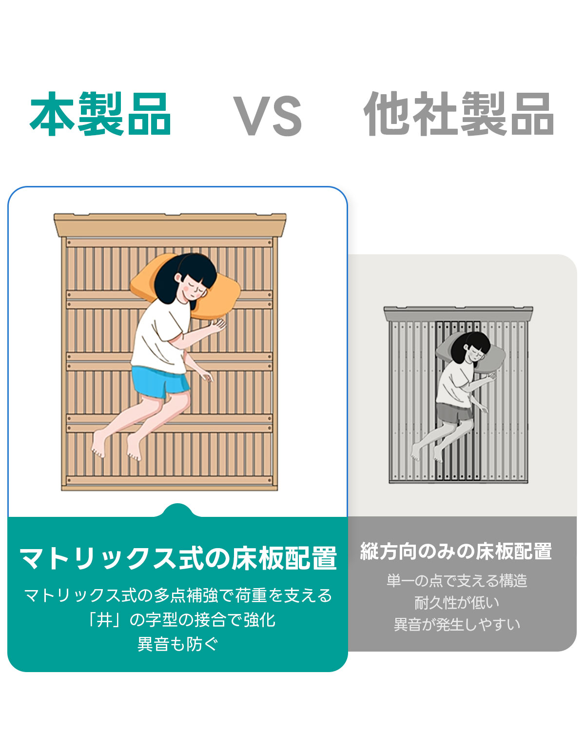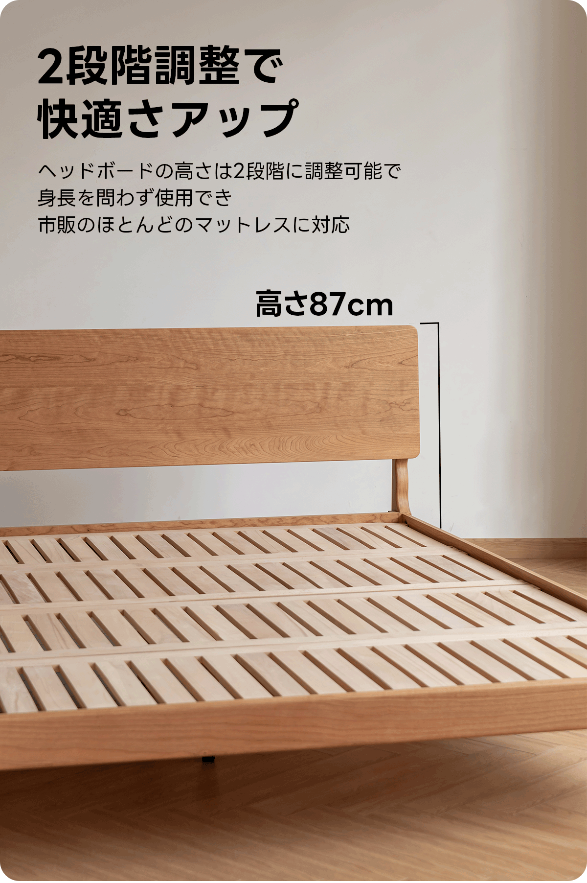 - 【快適な使用体験】ヘッドボードの高さを79cmと87cmの2種類から選べ、マットレスの厚さに合わせて調整可能。調整可能な脚パッドにより、床の凹凸にも対応しやすくなっています。