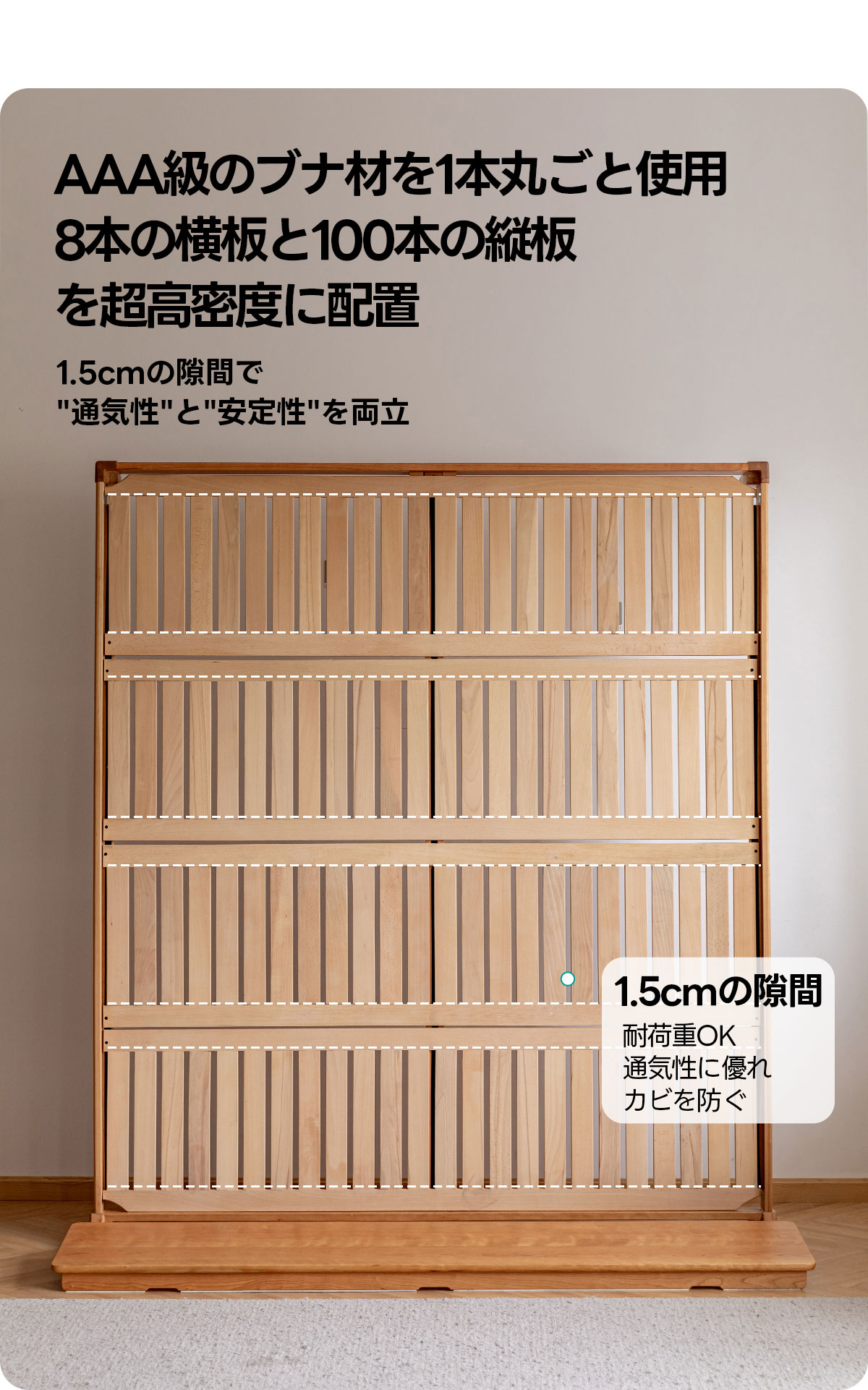 - 【多様な適用シーン】カップルやファミリー向けに設計され、ワイドダブルからキングサイズまでの選択が可能。ナチュラルなインテリアにぴったりで、寝室に温かみをもたらします。