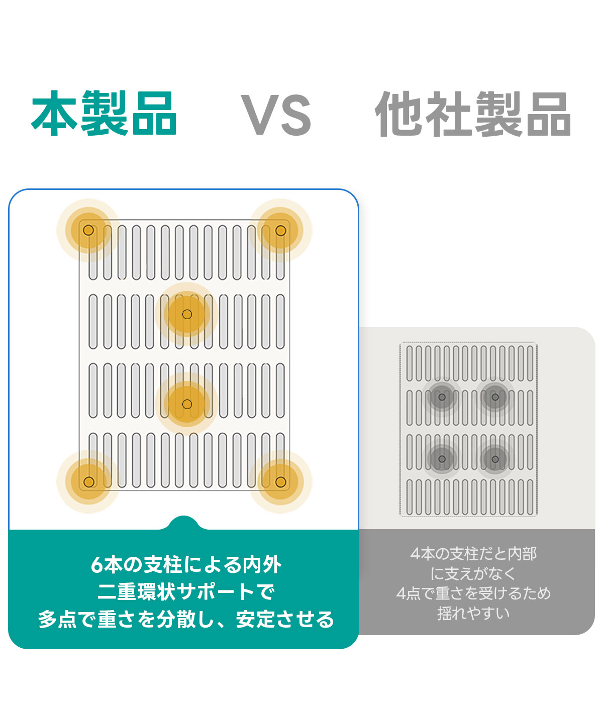 - 【優れた静音設計&安定性】静音テープと頑丈な金具を使用し、摩擦による異音を効果的に軽減。6本の太い脚で支えられた橋脚構造が揺れを防ぎ、安定感を提供します。