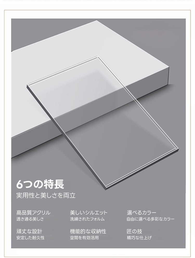 - 【高品質アクリル素材】:透明なアクリル素材を使用し、軽やかで高級感が漂います。角丸加工が施されており、安全で優しい手触りを実現しています。頑丈な設計で長くご愛用いただけます。