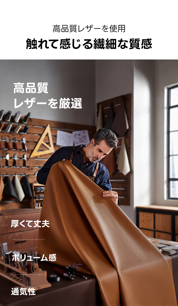 - 【高品質素材と頑丈なフレーム】トップグレインレザーを使用し、牛革の最高級部位がもたらす自然な美しさと耐久性を実現。ロシア産カラマツ材のフレームは長持ちし、安心してお使いいただけます。