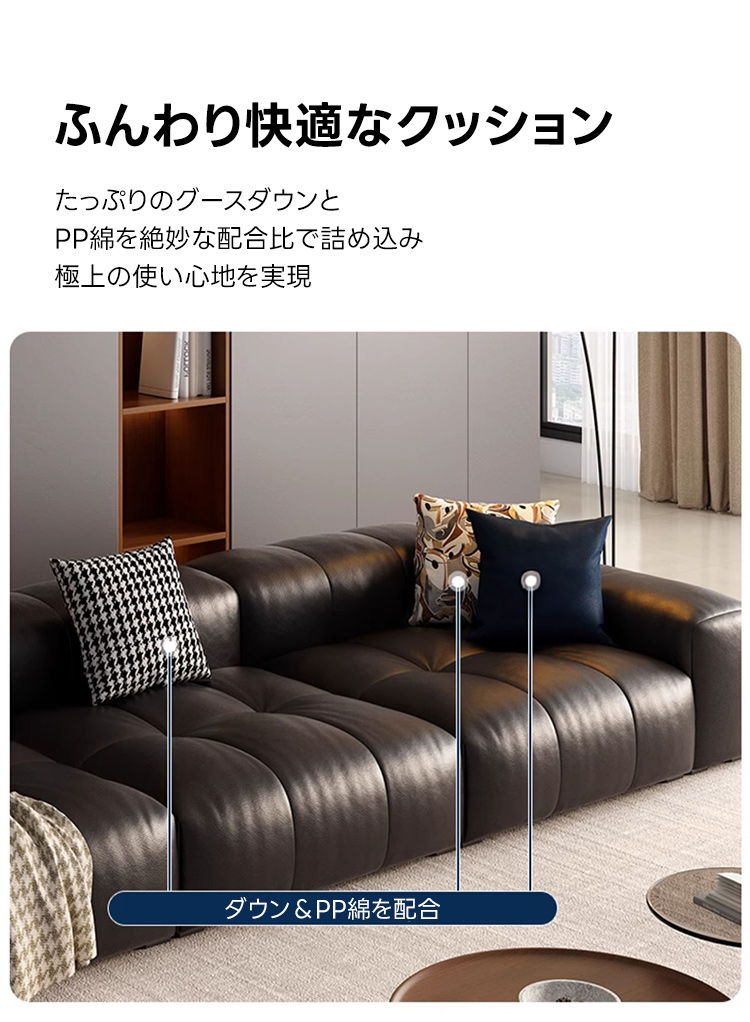 - 【多様なシーンで活躍】二人掛けから三人掛けまで対応可能なサイズで、カップルやファミリーに最適です。リビングをラグジュアリーに演出し、ゆったりとした時間を過ごせます。