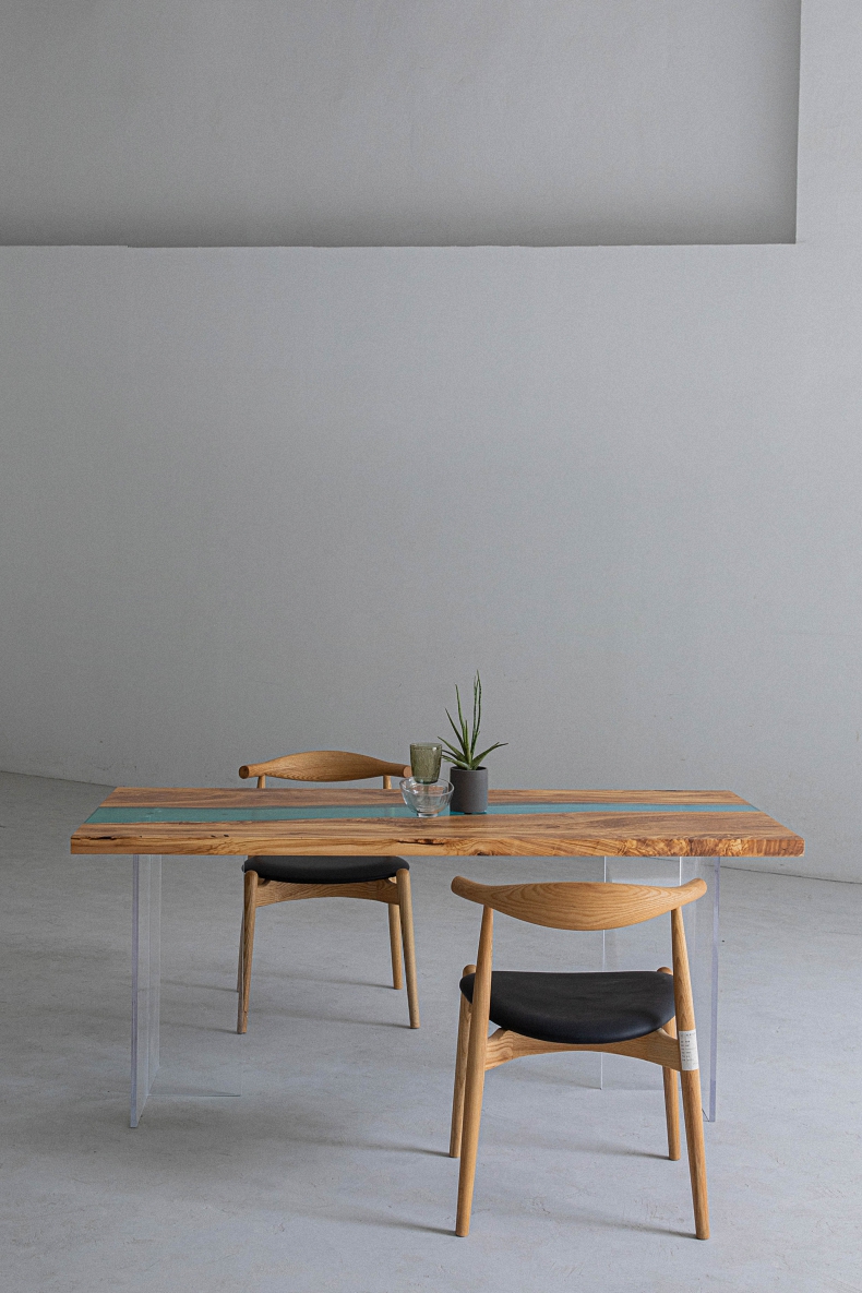 - 【唯一無二のデザイン】天然木の不規則な形状とアクリルの組み合わせにより、まるで川が流れるような美しいデザインを実現。どの角度から見ても魅力的なこのテーブルは、リビングやダイニングに特別な空間を提供します。