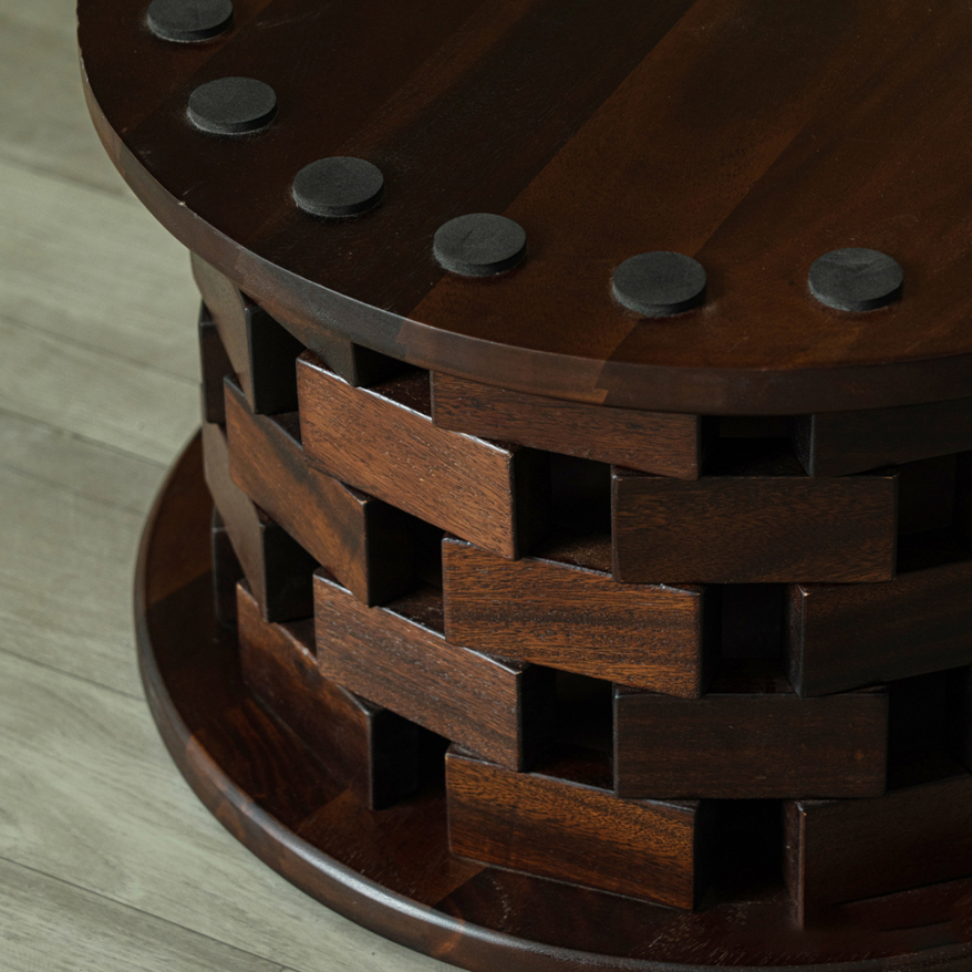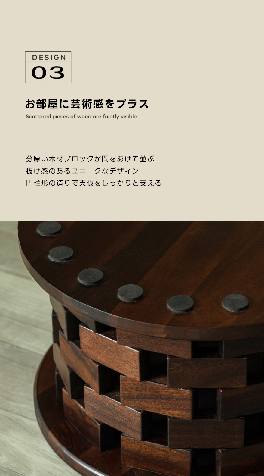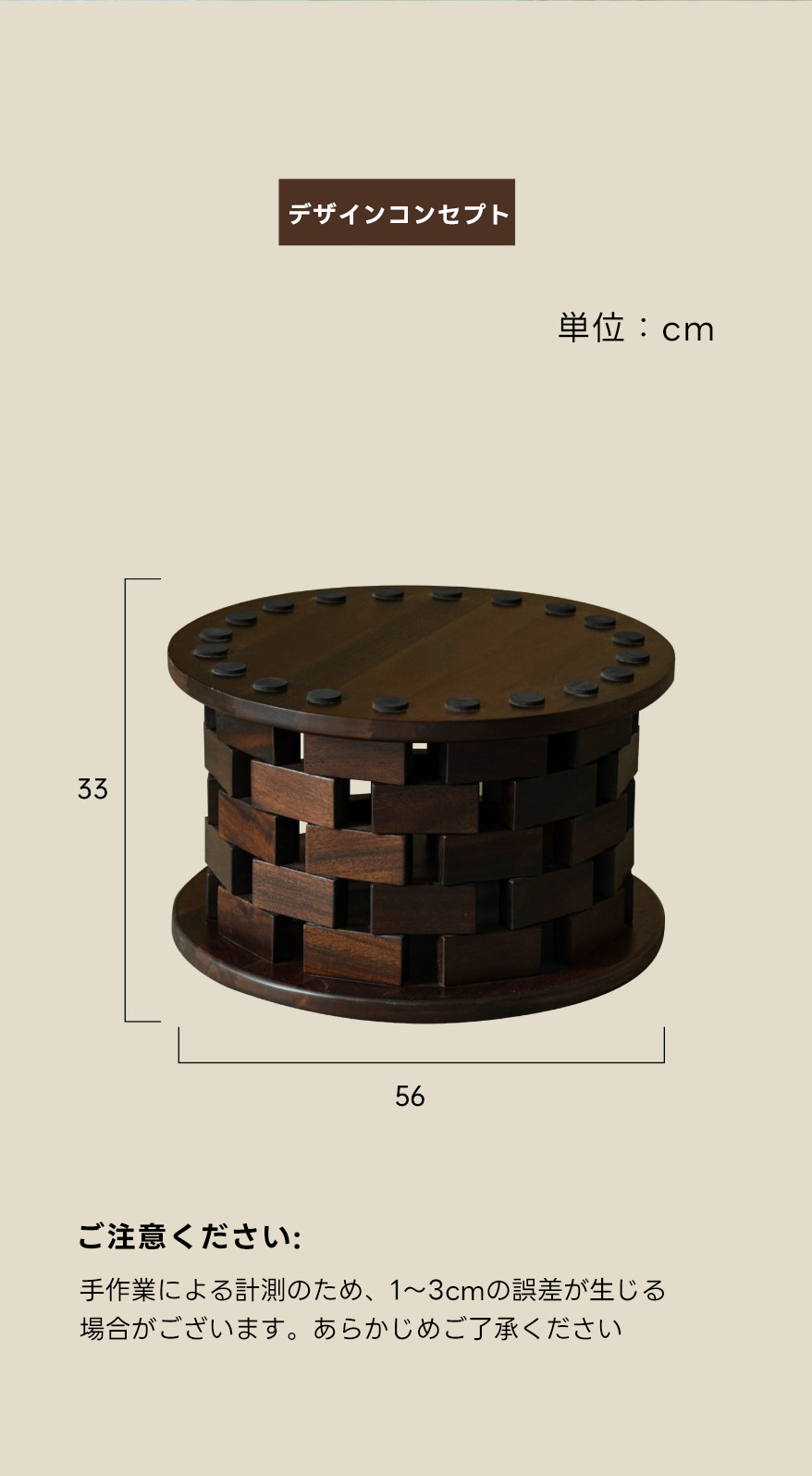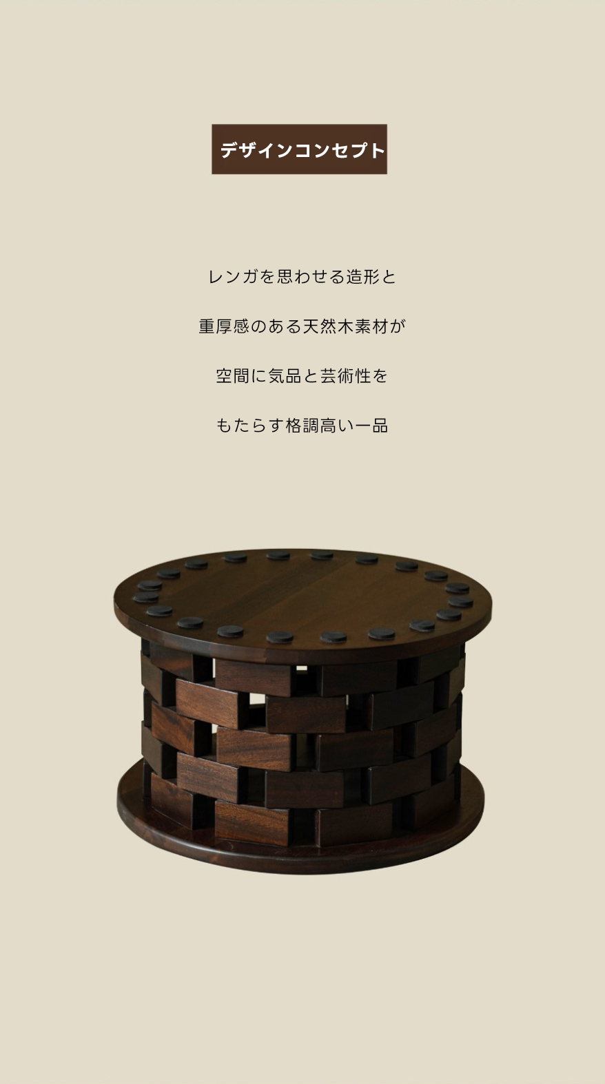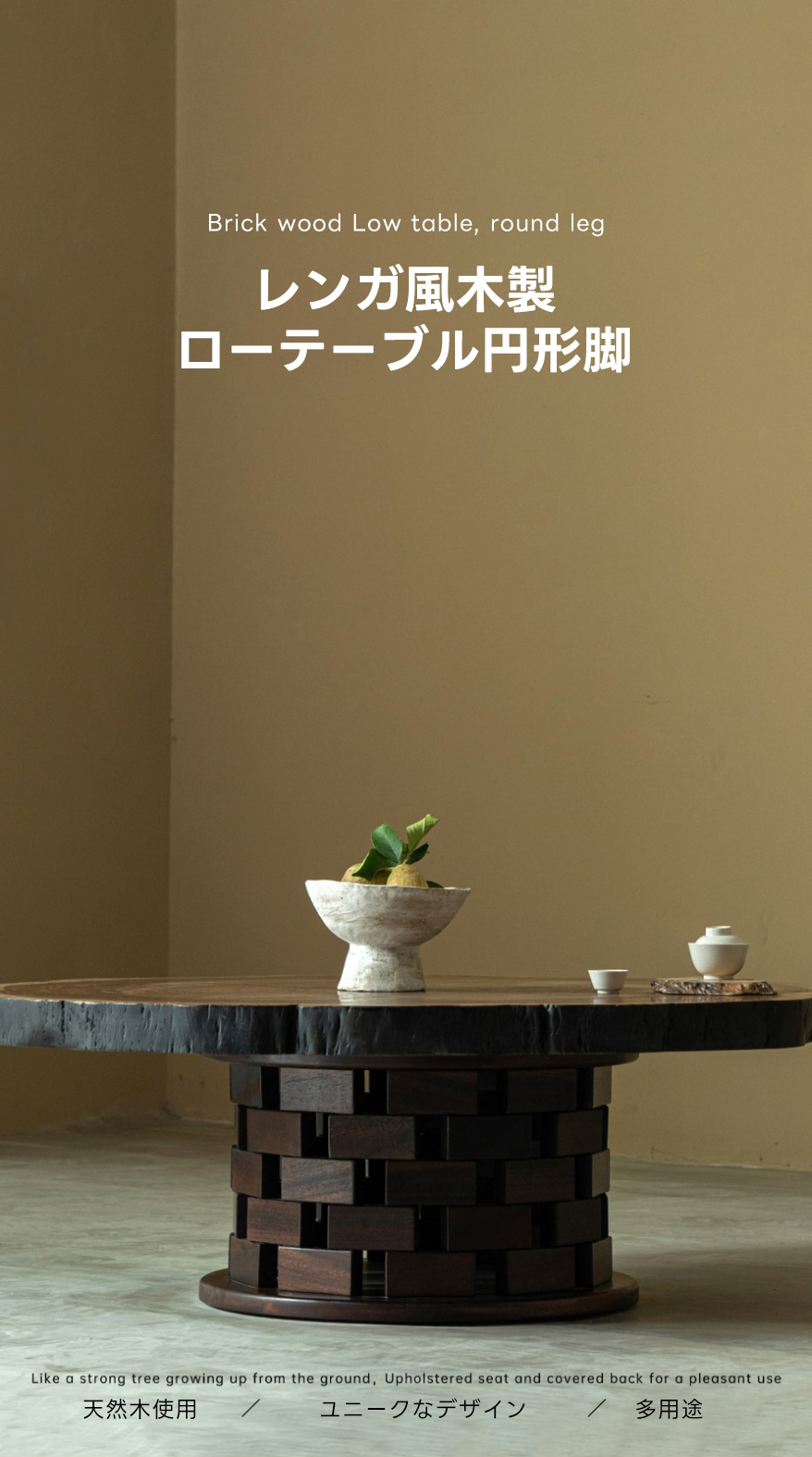 - 【ユニークなレンガ風デザイン】このローテーブルは、レンガを思わせる独特の造形が特徴です。木材ブロックが間をあけて並び、抜け感のあるデザインが魅力で、リビングやダイニングの空間をスタイリッシュに演出します。