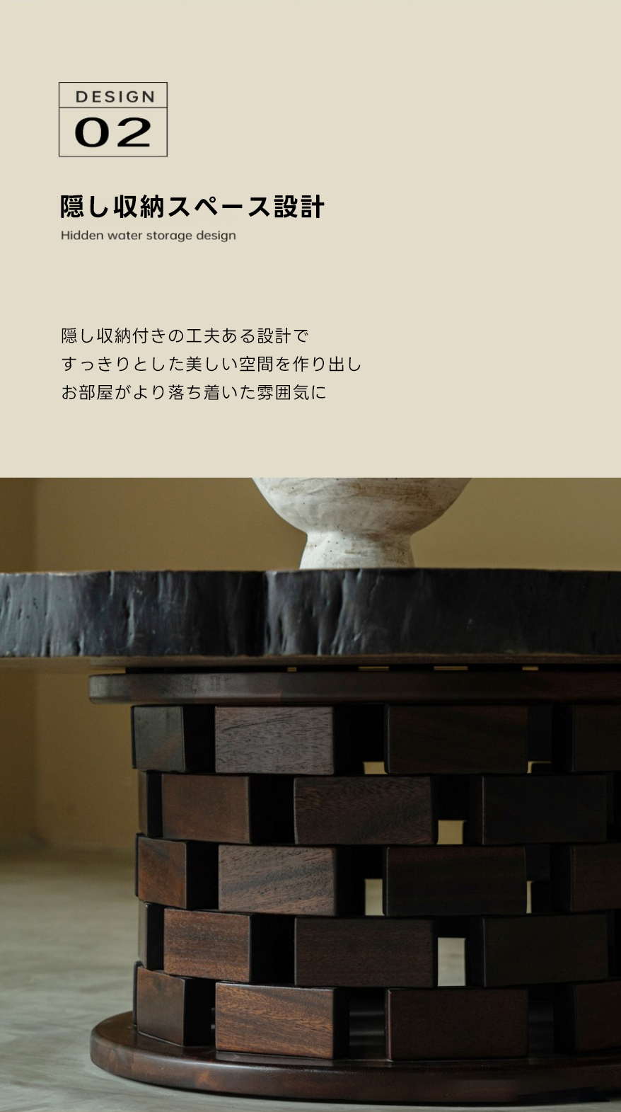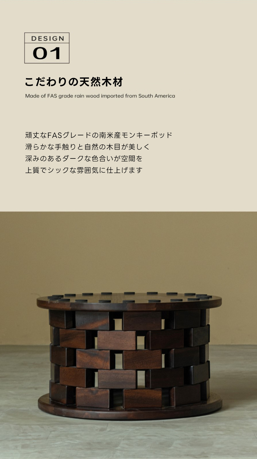 - 【高品質な素材と構造】南米産のFASグレードモンキーポッドを使用し、耐久性に優れた木製テーブルです。滑らかな手触りと自然な木目が美しく、深みのあるダークブラウンの色合いが空間に高級感を与えます。