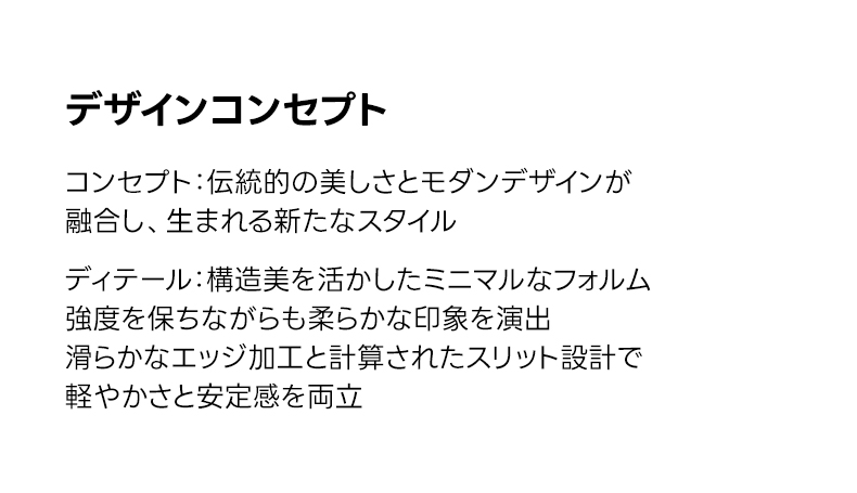 - 【厳選された素材と優れたデザイン】厳選されたホワイトアッシュ材を使用し、木目を活かした塗装仕上げで自然な美しさを引き立てます。伝統とモダンの融合をコンセプトにしたミニマルなフォルムと計算されたスリット設計で、軽やかさと安定感を両立しています。