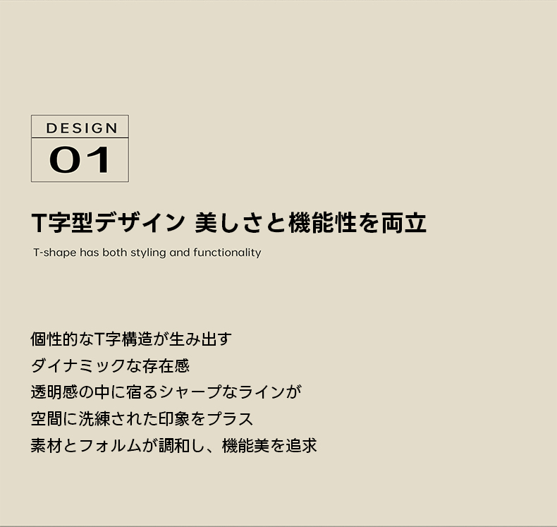 - 【美しさと機能性を両立したT字型デザイン】:T字型の構造は安定感抜群で、大型の天板もしっかりと支えます。シャープなラインが洗練された印象を与え、どんなインテリアスタイルにもマッチします。