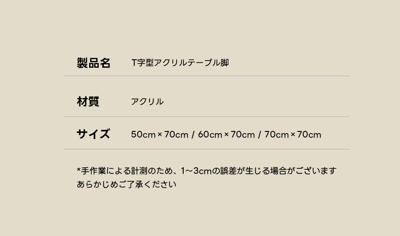 T字型アクリルテーブル脚