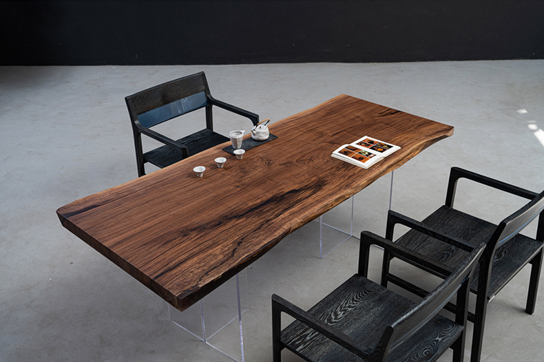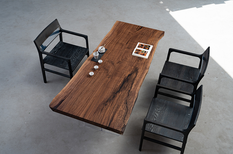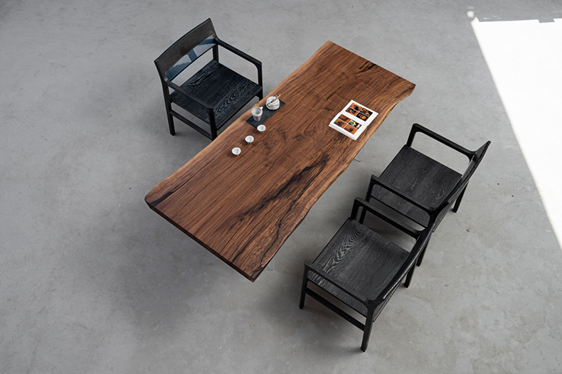 - 【唯一無二のデザイン】このブラックウォールナット製の一枚板テーブルトップは、自然が生み出した唯一無二の存在感を持っています。100年以上の樹齢を持つ木材を使用し、自然の美しさを最大限に引き出すため、余計な加工を施さずに仕上げられています。