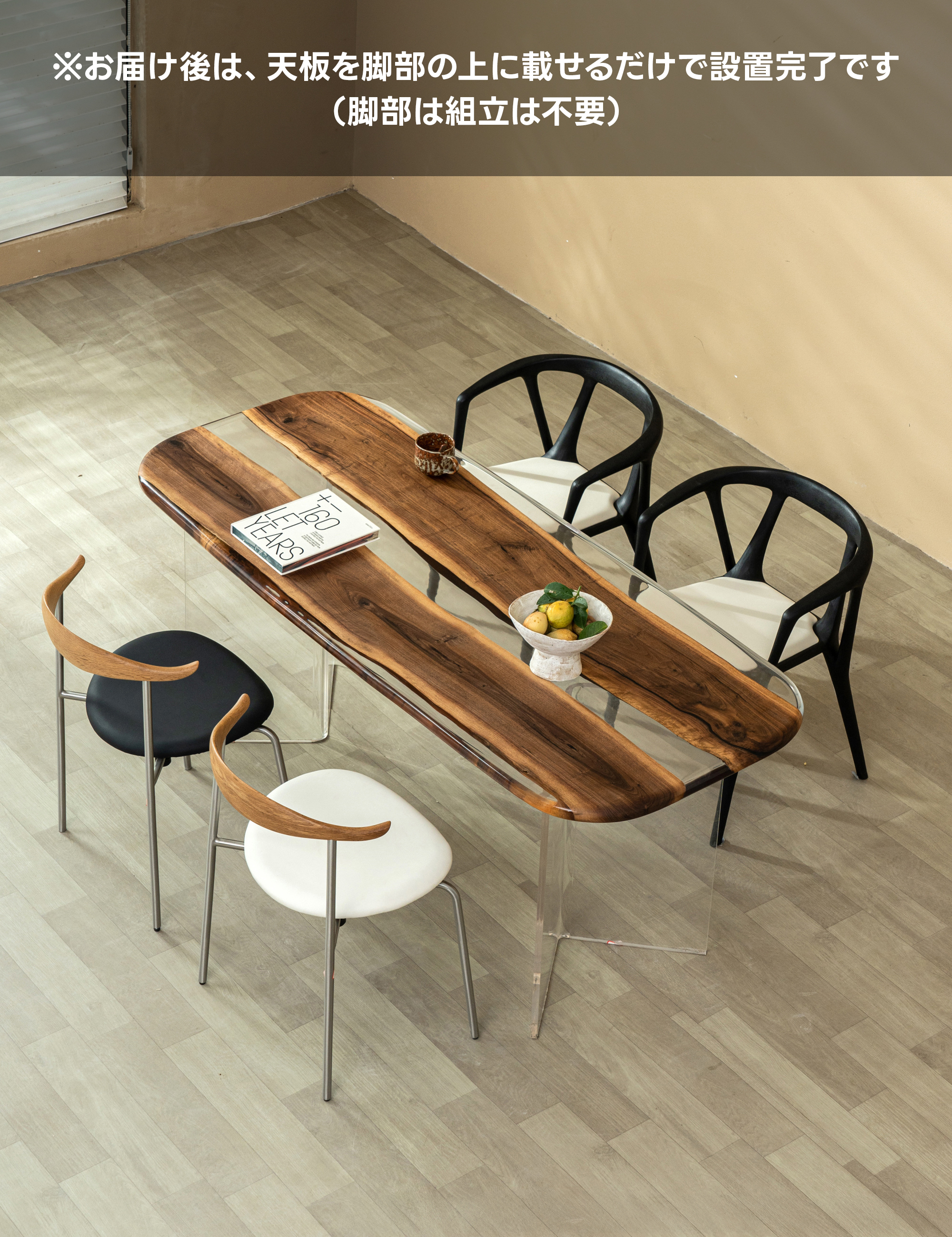 Ever Wood ブラックウォールナット製クリアテーブルトップ
