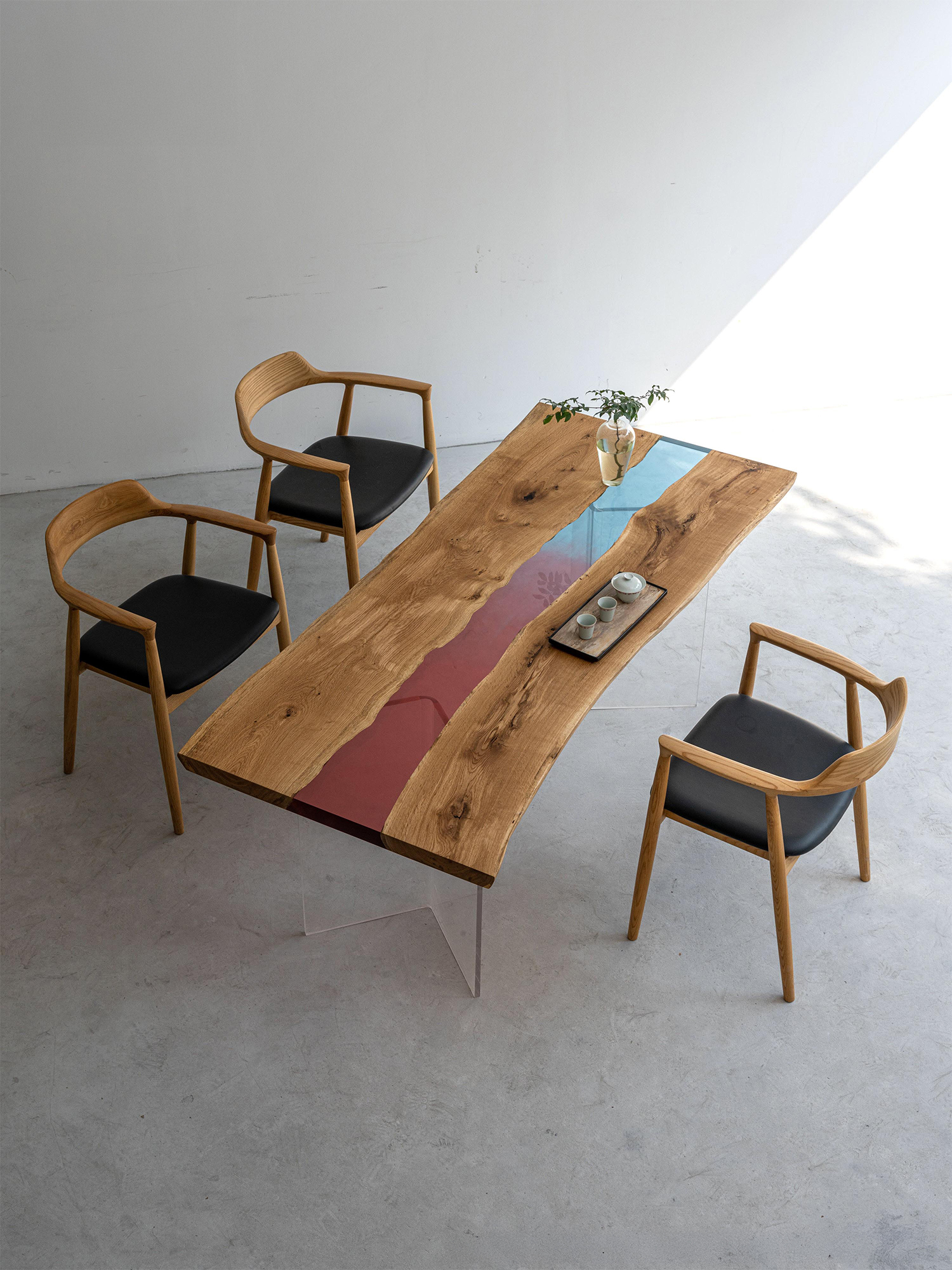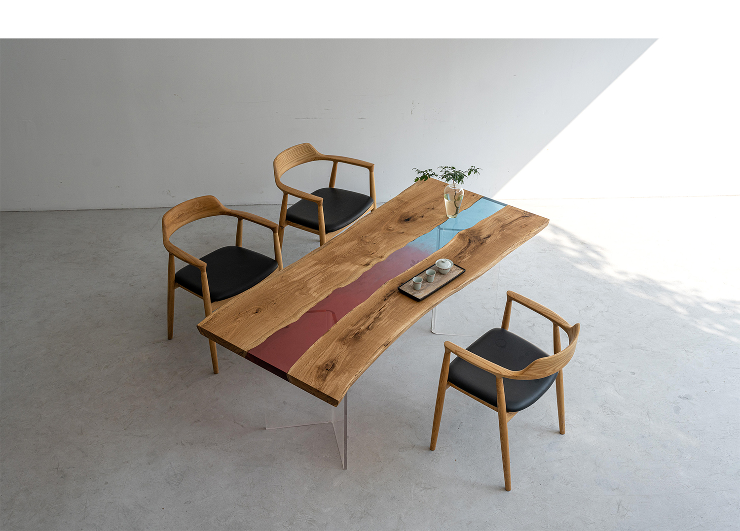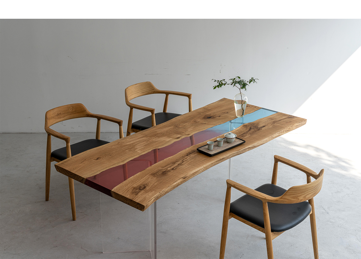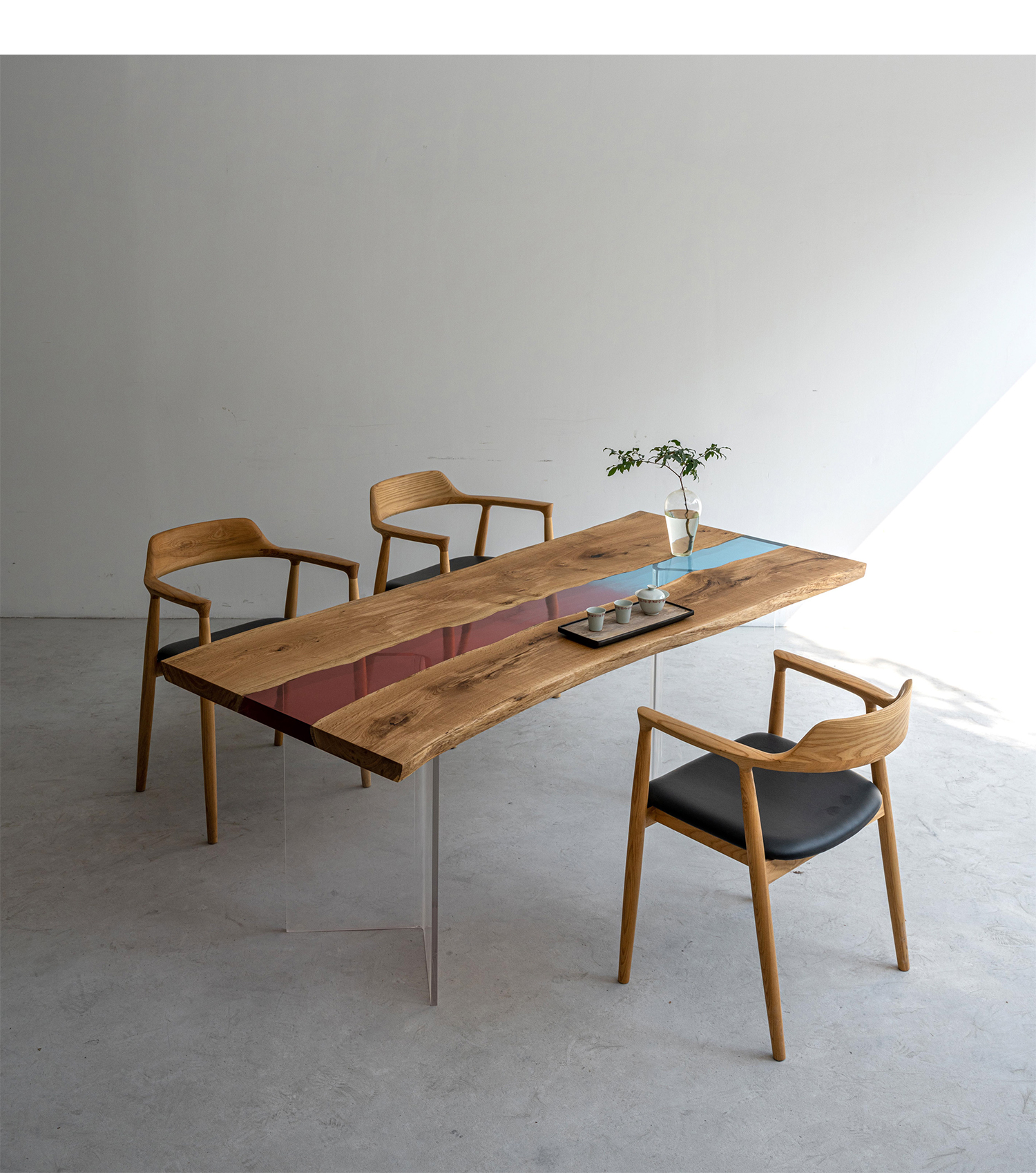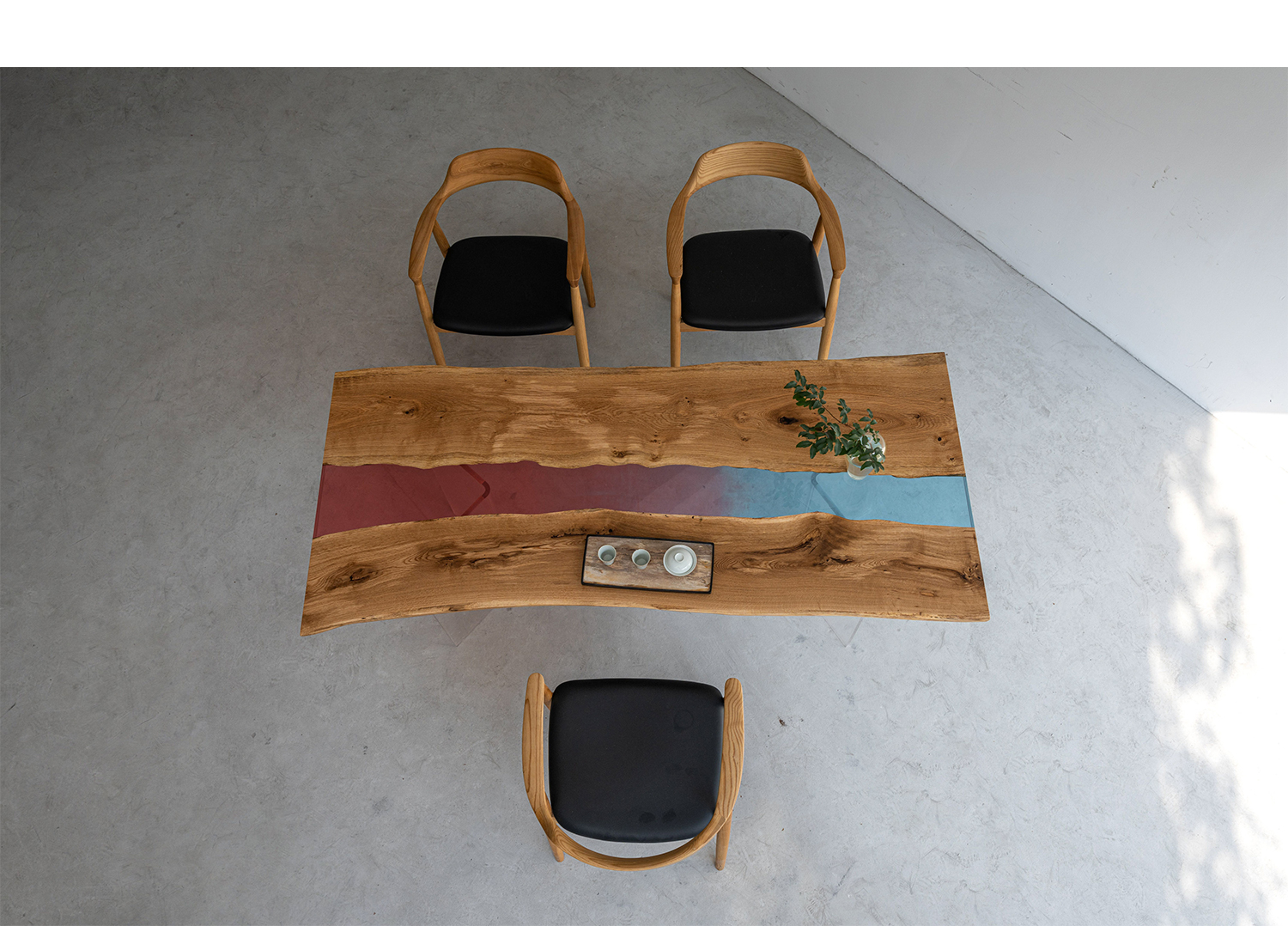 - 【一枚板の魅力と自然美】:このテーブルトップは、一本の木から切り出した一枚板を使用し、自然の美しさをそのままに活かしています。木目の美しさと自然の風合いが唯一無二の存在感を放ち、どんなインテリアにも調和します。