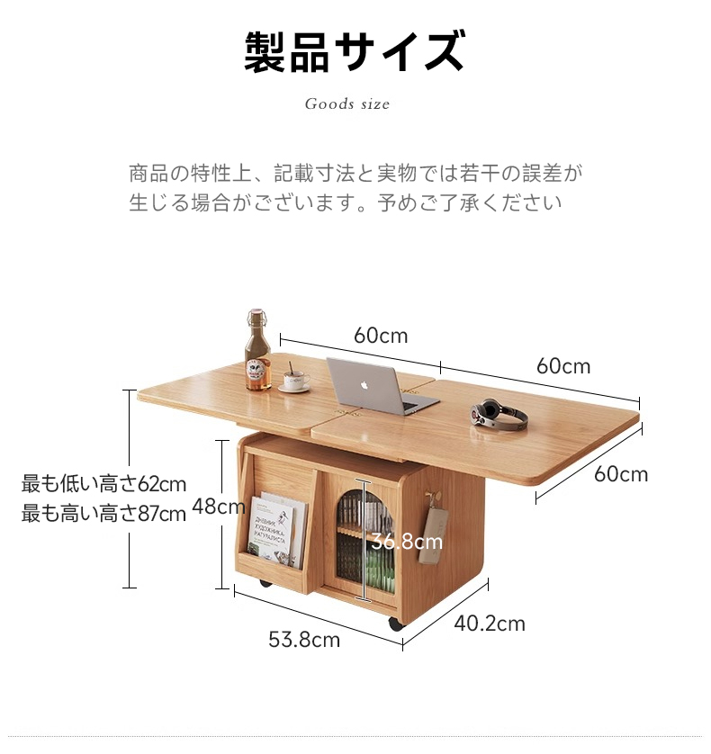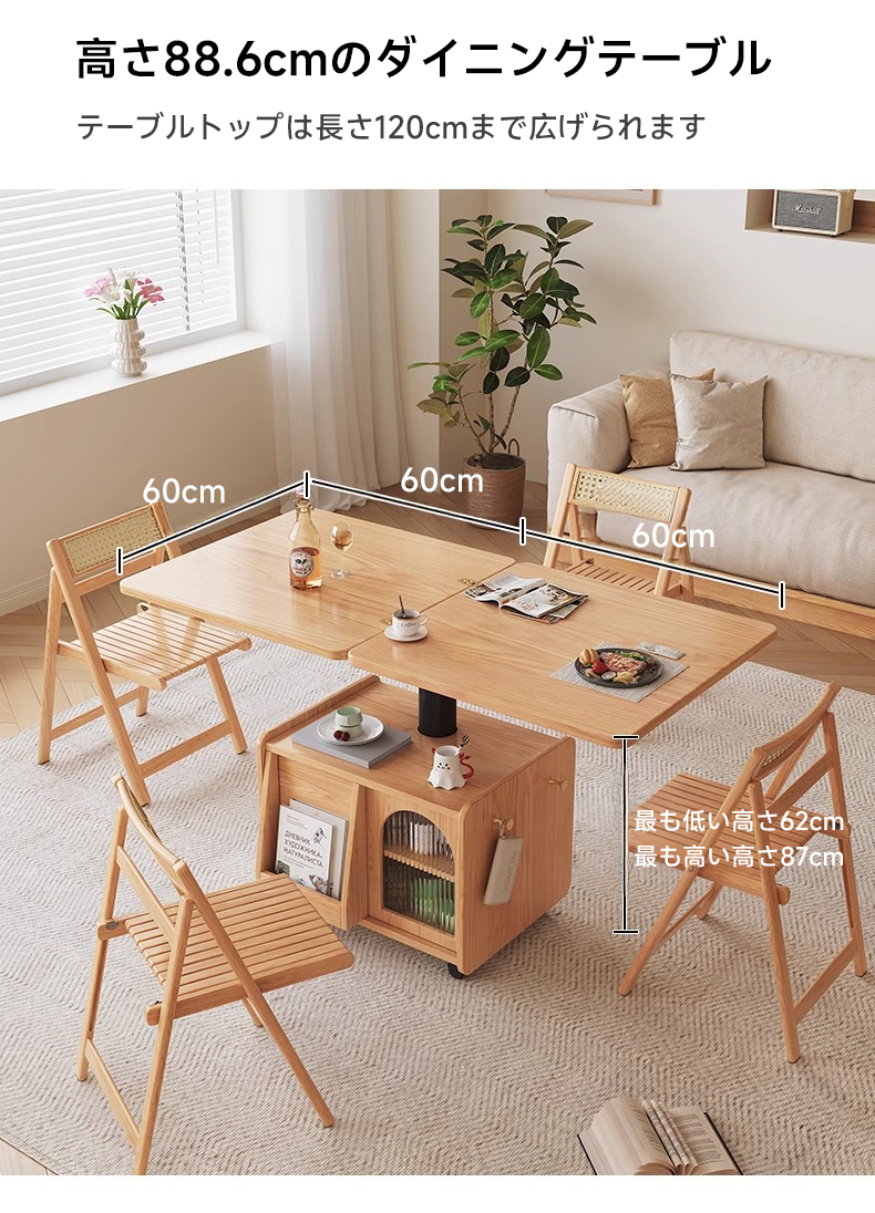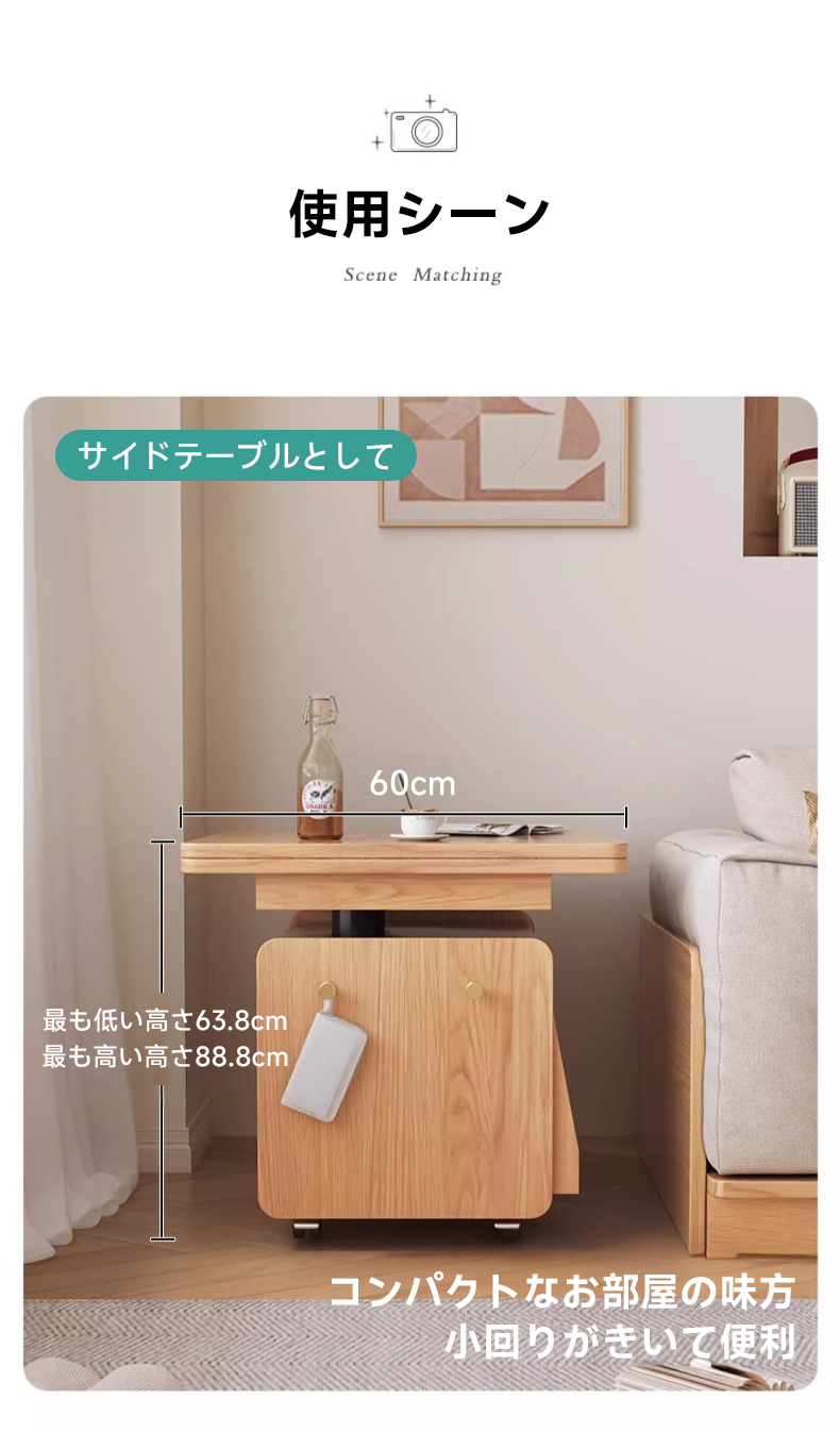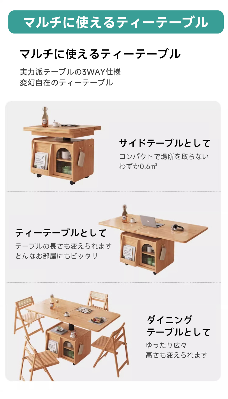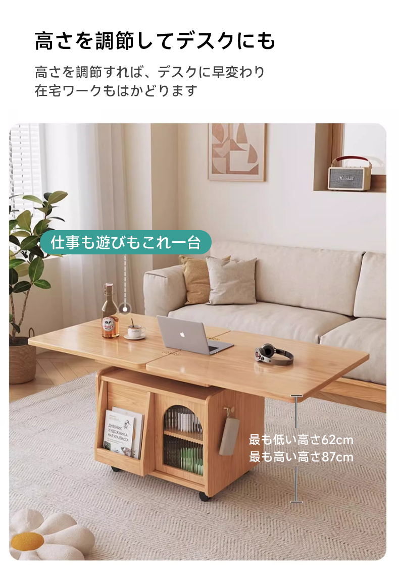 • 【多用途なデザインと機能性】昇降式多機能ティーテーブルは、サイドテーブル、ティーテーブル、ダイニングテーブルとして使用可能な多用途デザインです。高さは62cmから87cmまで調整可能で、用途に応じて簡単に変えられます。これにより、リビングやダイニングでの様々なシーンに対応します。