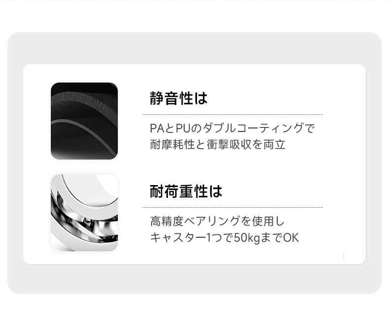 • 【安心のサポートと安全性】キャスターは100kgまで耐えられるので、安心して使用できます。耐久性と安全性を重視した設計で、日常の使用においても長くお使いいただけます。