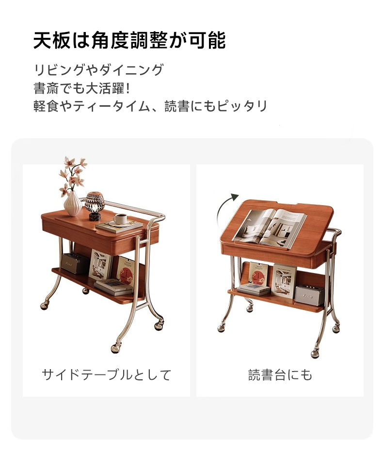 - 【多用途なデザイン】このティーテーブルは、サイドテーブルや読書台としても使用可能です。天板の角度調整が可能で、読書やティータイムに最適です。コンパクトなサイズで、リビングやダイニングを広く使えます。