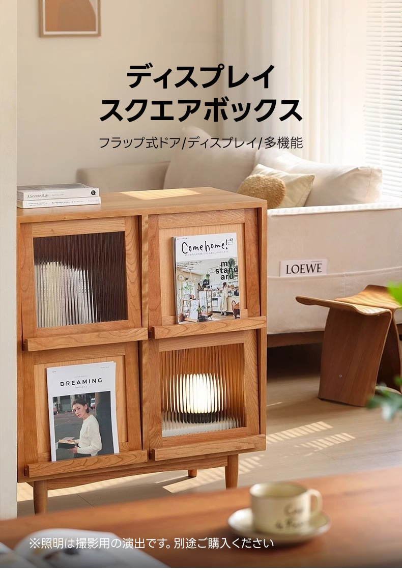 - 【多用途対応の高級キャビネット】:ディスプレイスクエアボックスは、リビング、ダイニング、寝室など、どんな空間にもマッチする多用途対応のキャビネットです。雑誌やレコードのディスプレイにも最適で、空間をおしゃれに演出します。