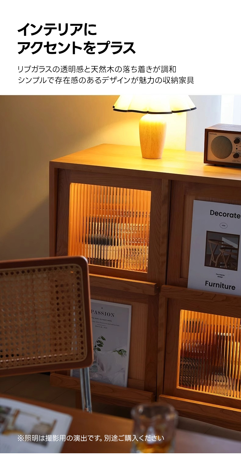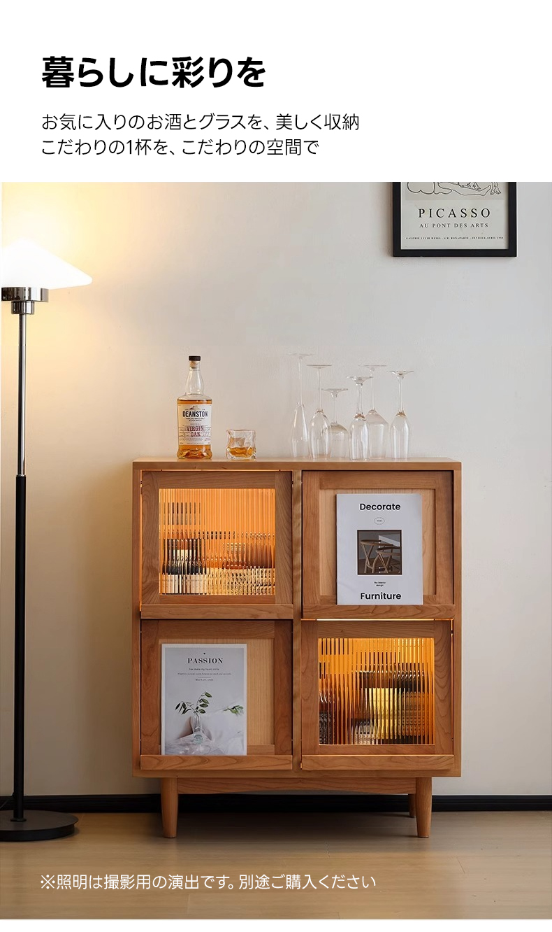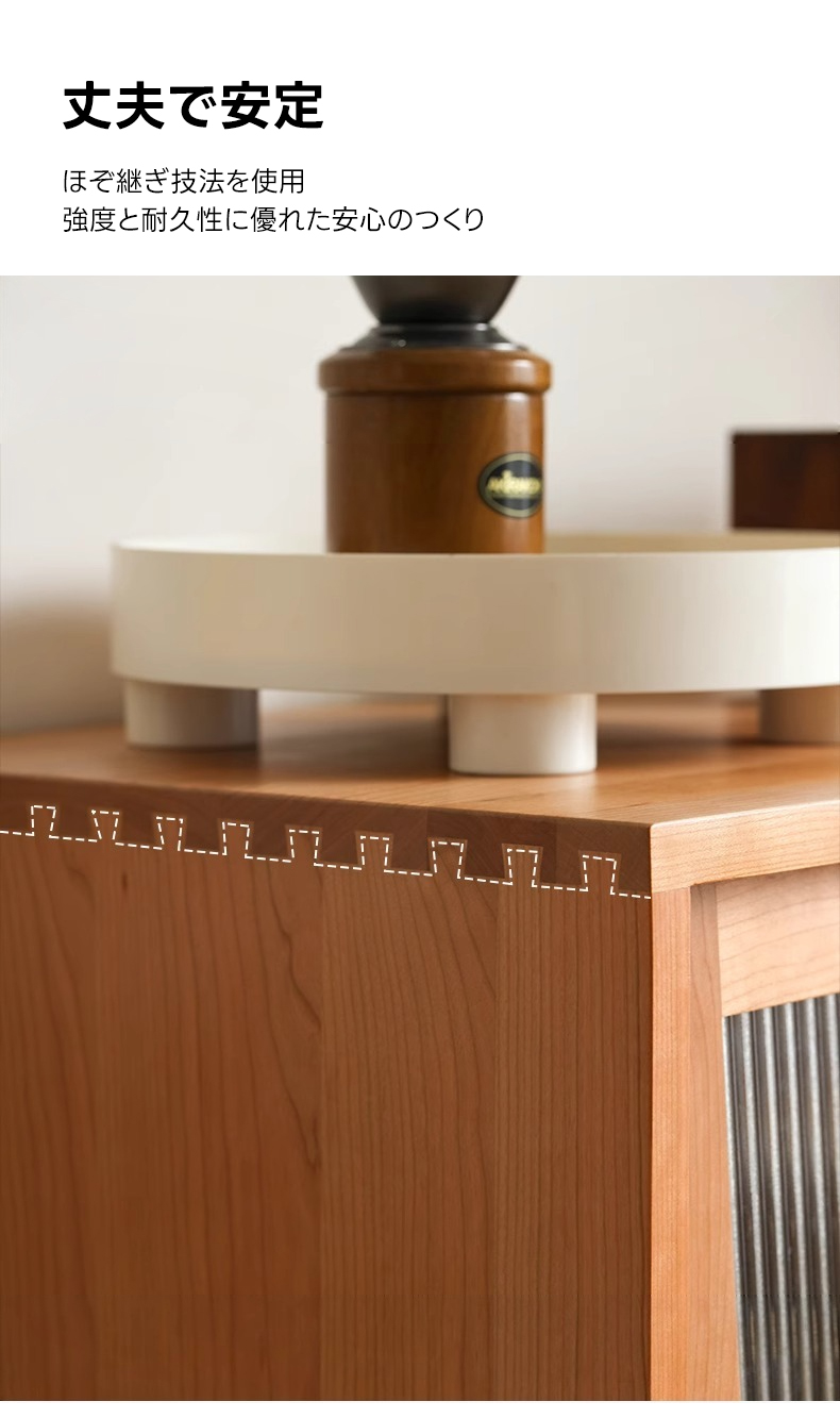- 【高級素材と洗練されたデザイン】:北米産FAS級ツゲ材とチェリー材の上品な赤みが特徴の高級素材を使用し、リブガラスと天然木合板が調和したデザインで、経年変化を楽しむことができます。