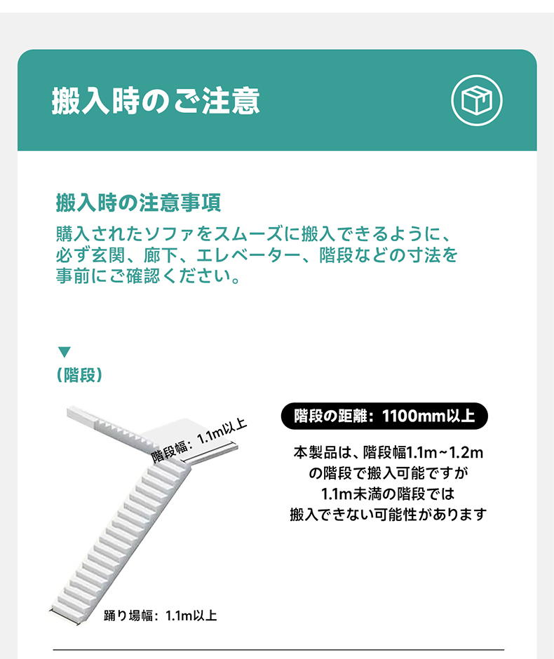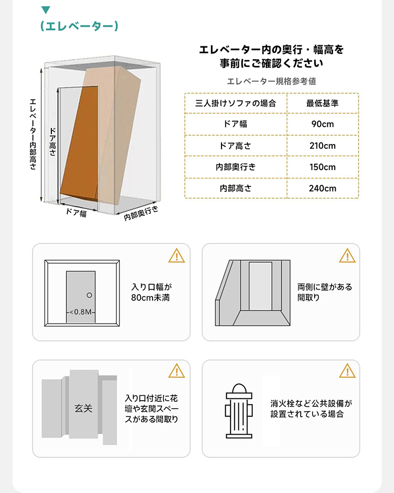 ※搬入不可等の理由による注文キャンセルは、ご返送にかかる費用をお客様にご請求いたします。ご注文前に大型家具の搬入方法をご確認ください。