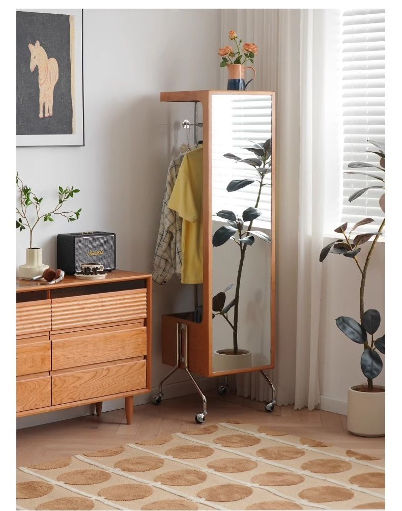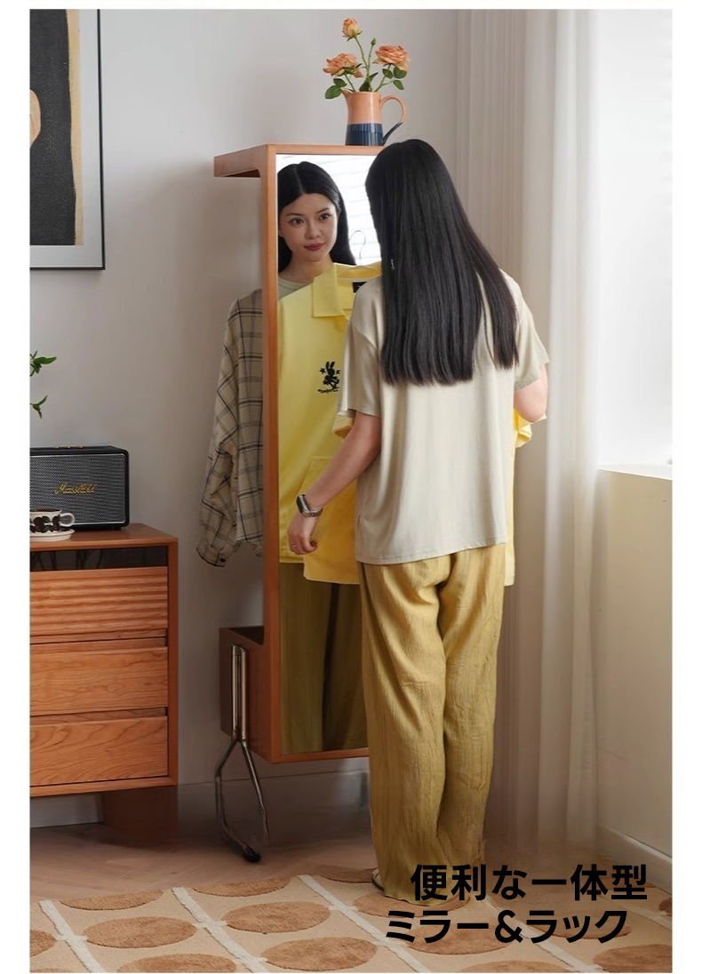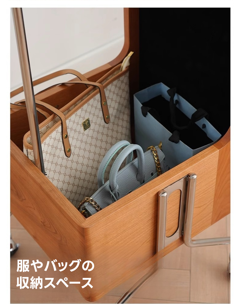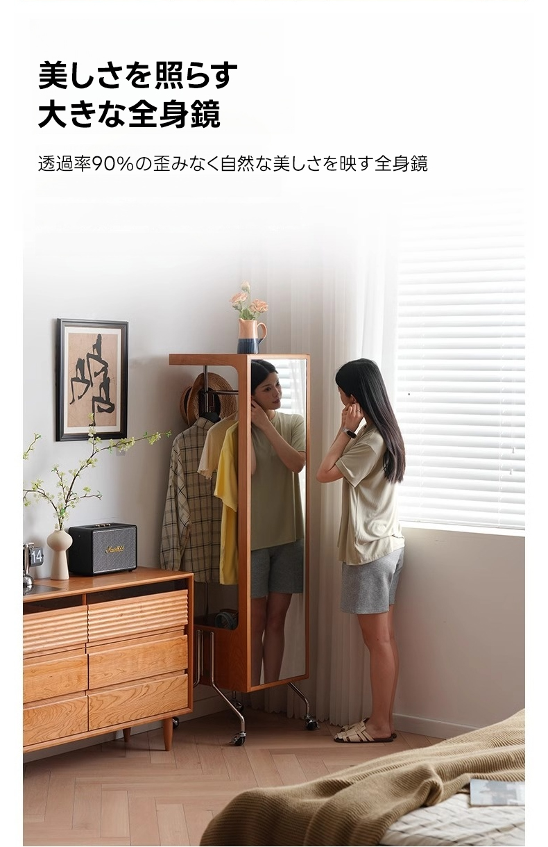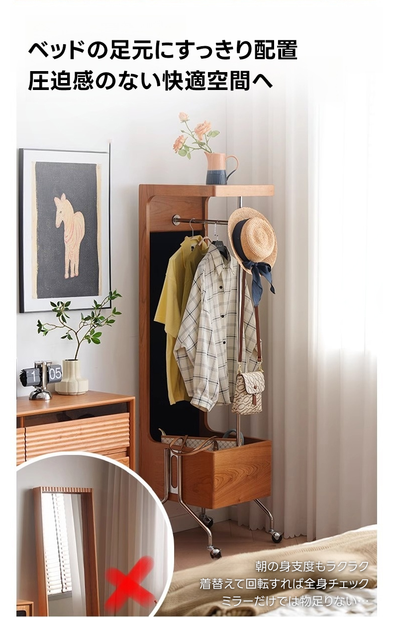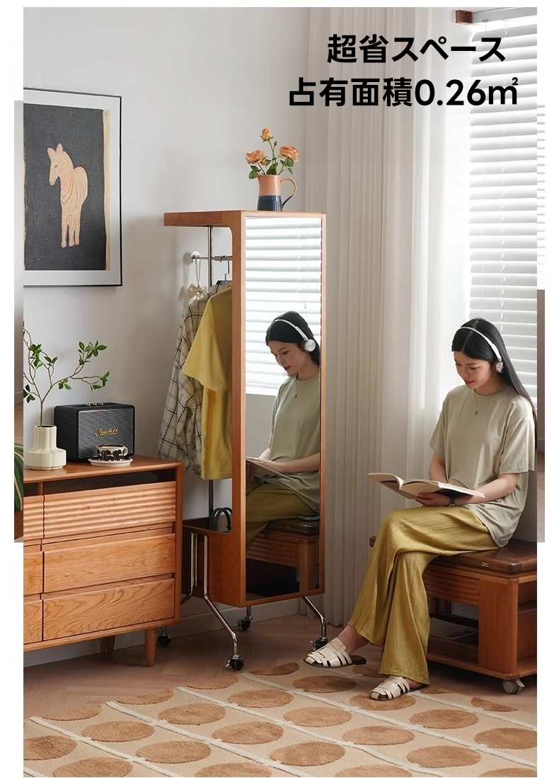 - 【多機能性と省スペース設計】この移動式ミラー付きクローゼットは、全身鏡とハンガーラックを一体化したデザインで、衣類や小物を効率よく整理整頓できます。占有面積はわずか0.26㎡で、一人暮らしやカップル、ファミリーに最適です。