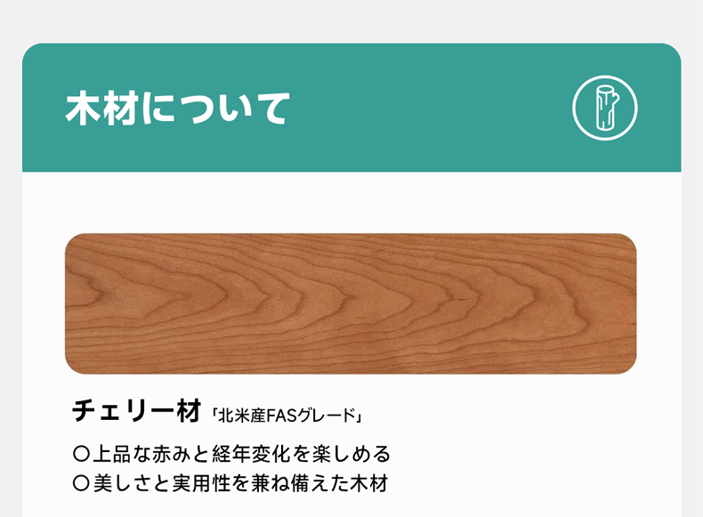 - 【高品質な素材と美しいデザイン】北米産FASグレードのチェリー材とブラックウォールナット材を使用し、耐久性と美しさを兼ね備えています。ナチュラルなブラウンとダークブラウンの色合いがどんなインテリアにもマッチします。