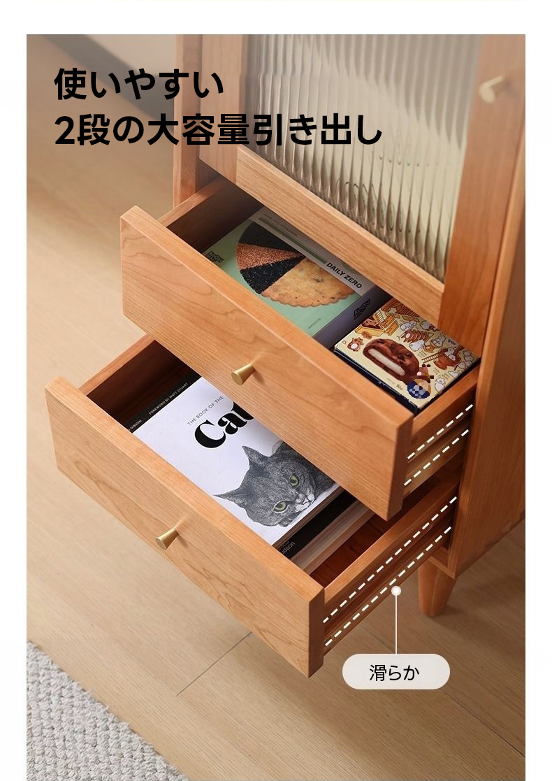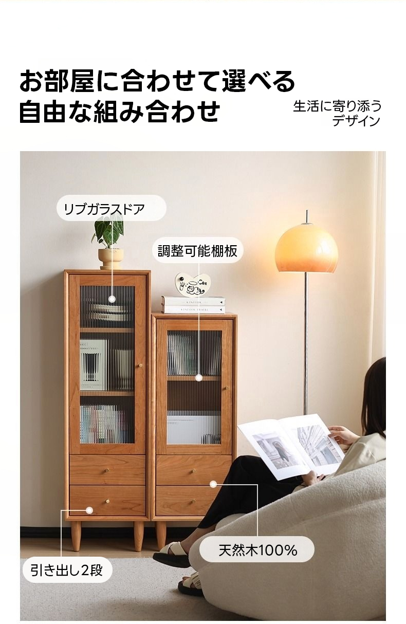 - 【優れた収納機能】:ミニスリムキャビネットは、調整可能な棚板と2段の引き出しを備え、多様なアイテムを効率的に収納できます。リブガラスドアはほこりを防ぎつつ中のアイテムを美しく見せるため、実用性とデザイン性を兼ね備えた収納家具です。