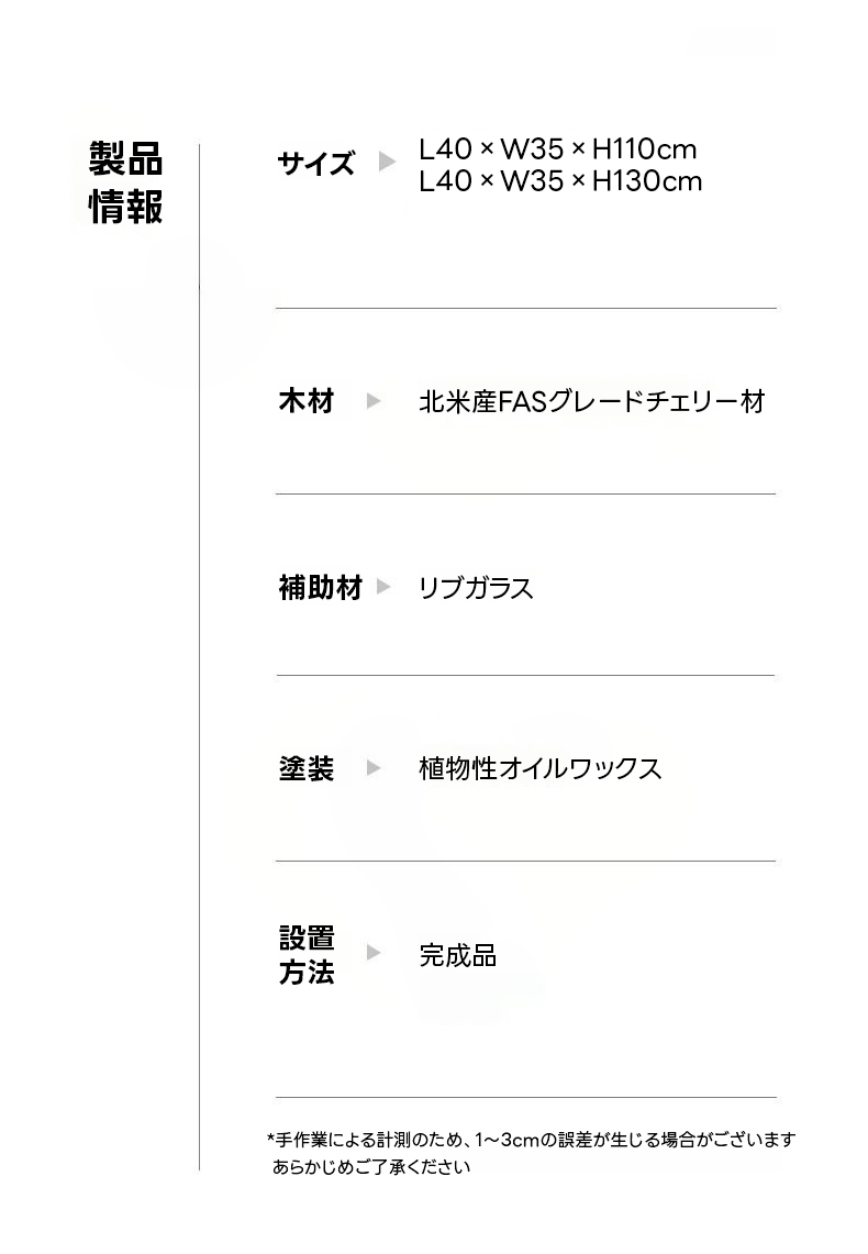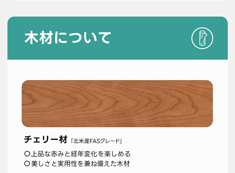 - 【高品質素材とデザイン】:北米産FASグレードのチェリー材を使用し、耐久性と美しい赤みの経年変化を楽しめます。環境に優しい植物性オイルワックスで仕上げられ、ドイツ製のオイルワックスが優れた手触りと安全性を提供します。
