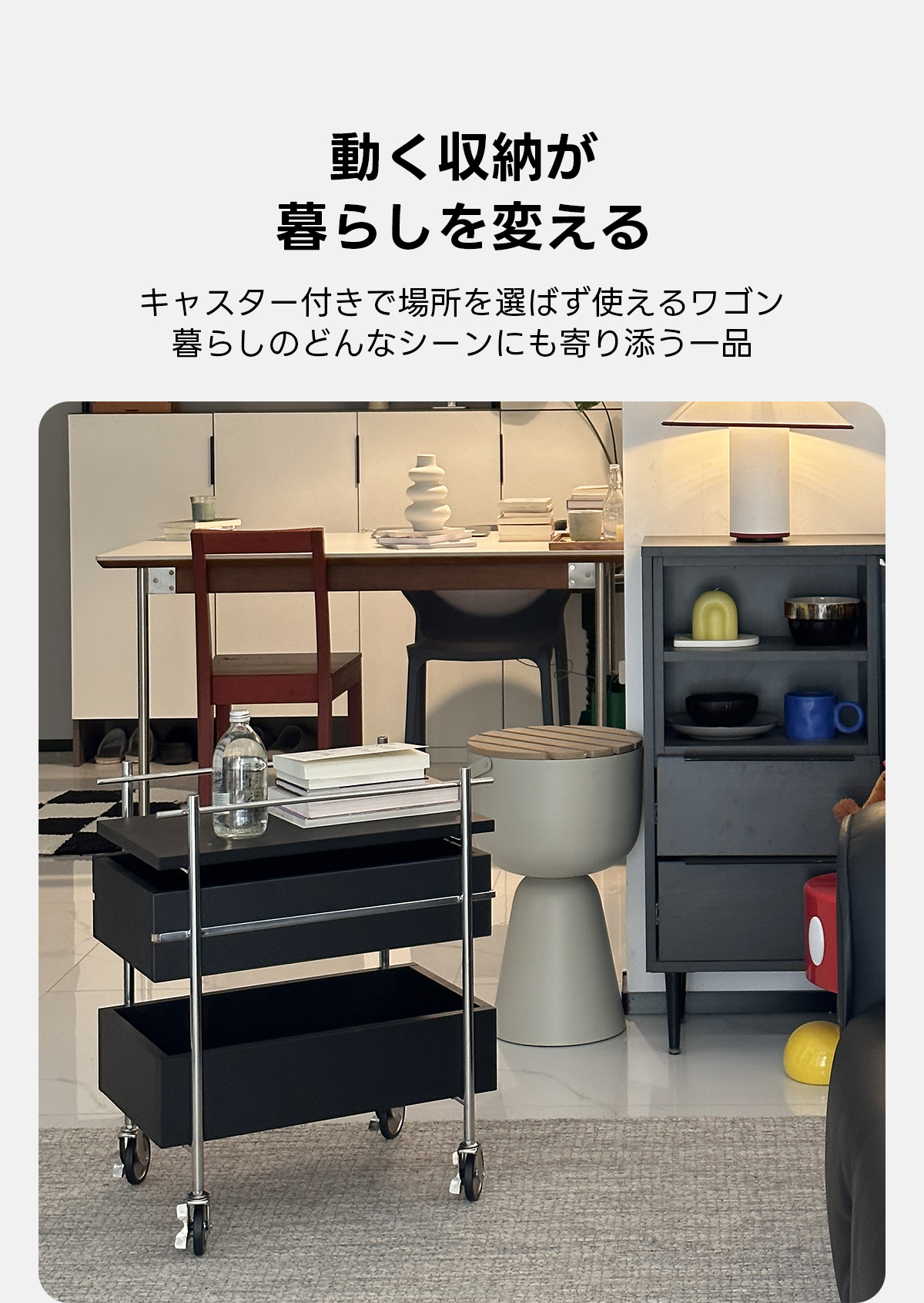 - 【ユーザーに優しい体験】:ロック付きキャスターが付いており、簡単に移動できるだけでなく、しっかりと固定することも可能です。コンパクトでありながら、十分な収納力を持っています。