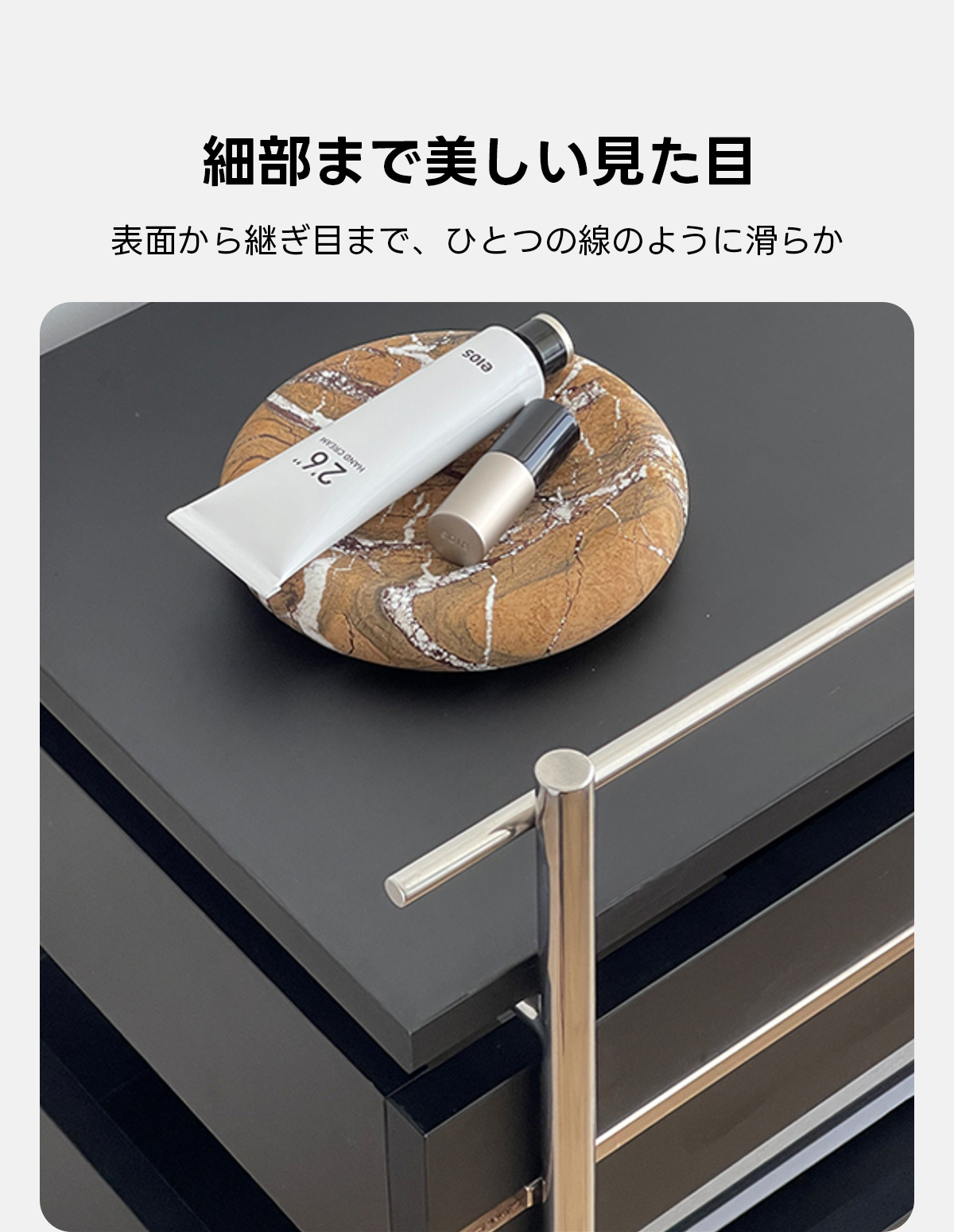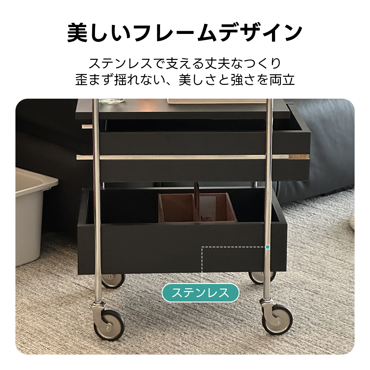 - 【高品質な素材とデザイン】:ステンレスフレームと天然木化粧合板を使用し、美しさと強度を兼ね備えています。ブラックの色合いが高級感を演出し、どんなインテリアにもマッチします。