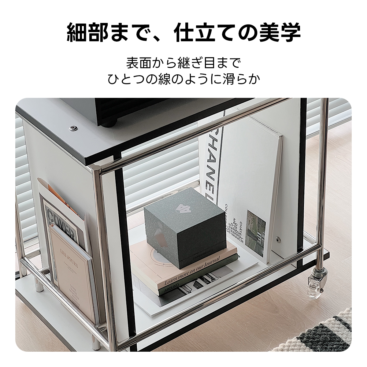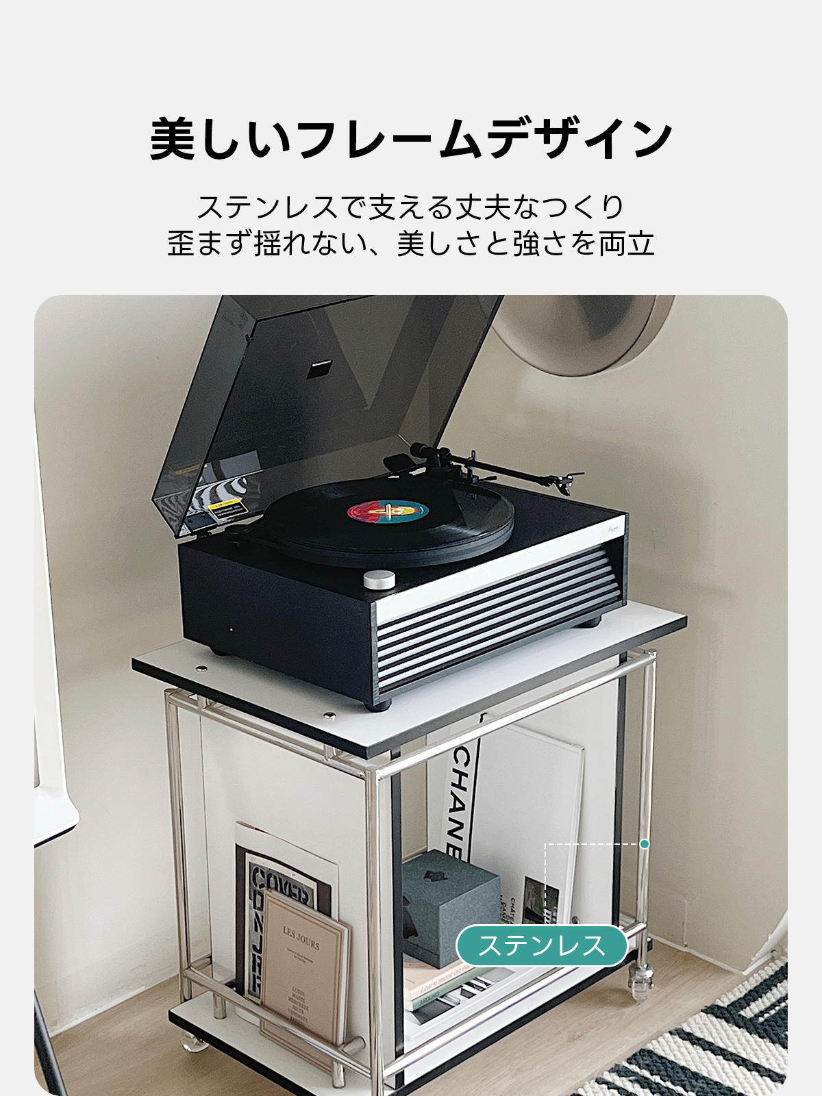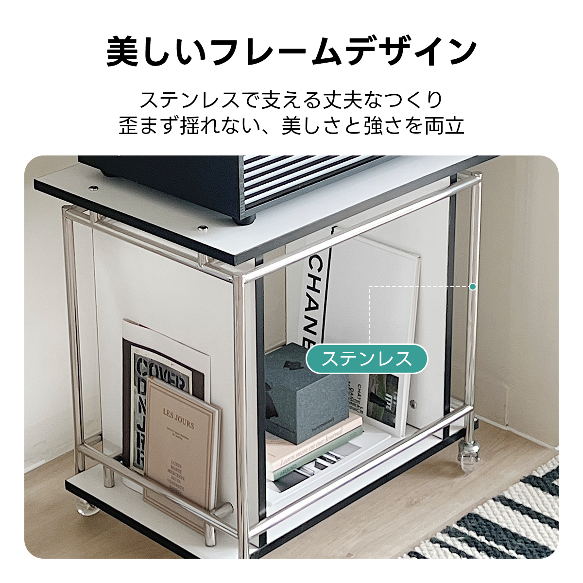 - 【美しいデザインと高品質素材】:ステンレスフレームが洗練された印象を与え、シンプルでありながらモダンな雰囲気を演出します。合成板とステンレスを使用した頑丈なフレームにより、安定感がありながらも美しい外観を保っています。
