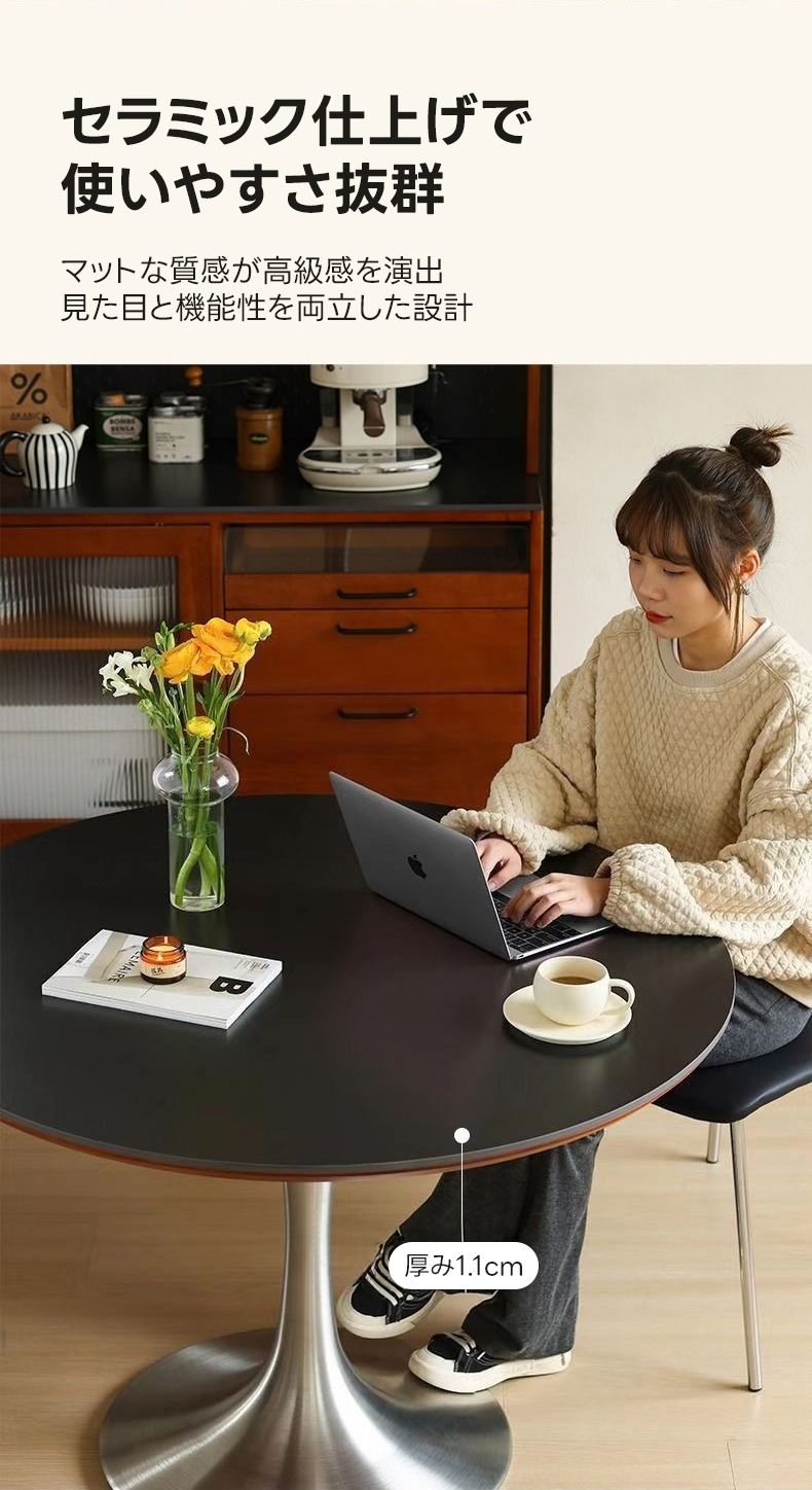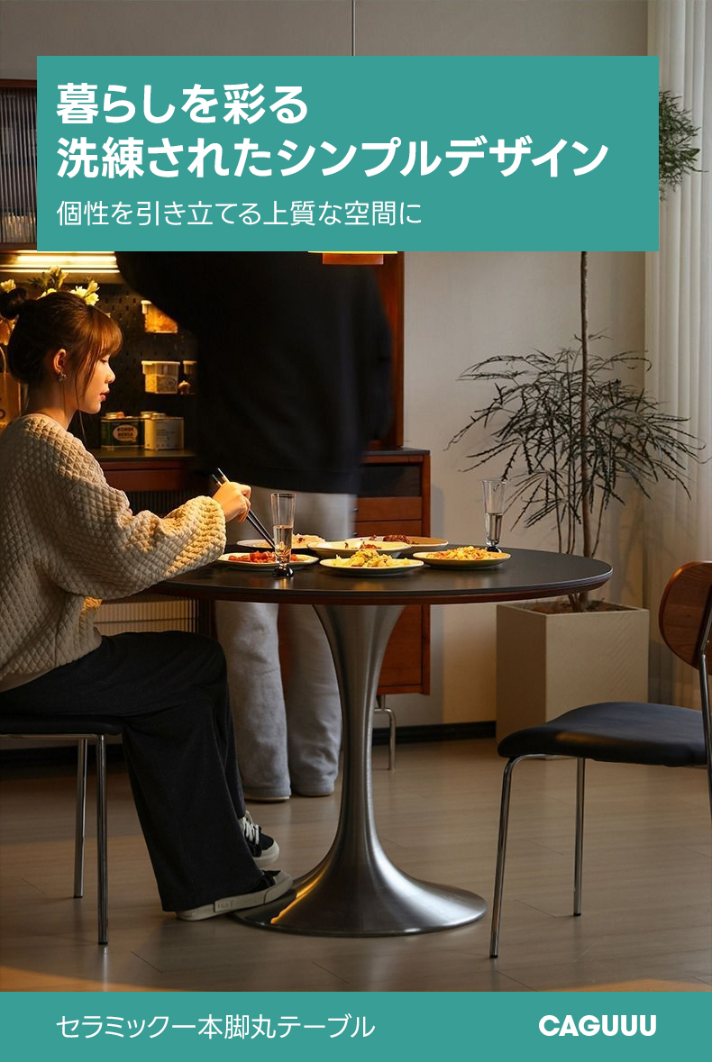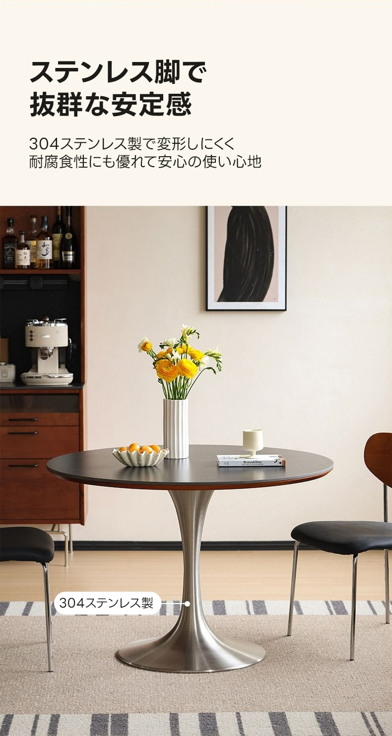 - 【高品質な素材とデザイン】ツゲ材とセラミックを組み合わせた天板は、耐久性と美しさを兼ね備えています。ステンレス製の一本脚は安定感を提供し、長期間使用しても変形しにくいです。ヴィンテージ風のデザインがどんなインテリアにもマッチします。