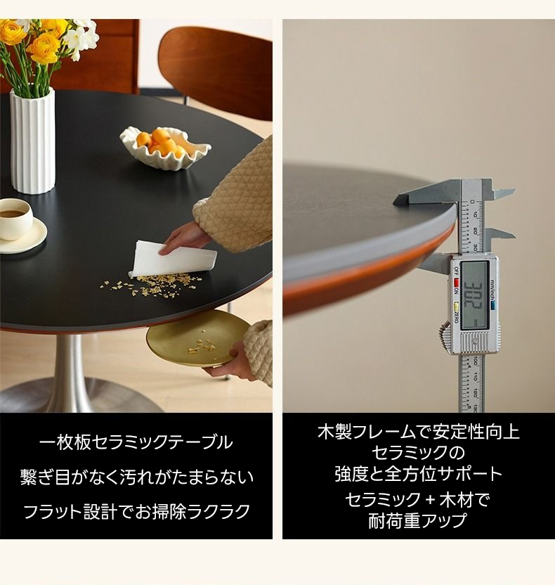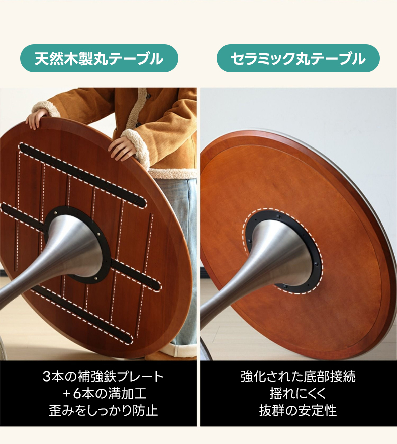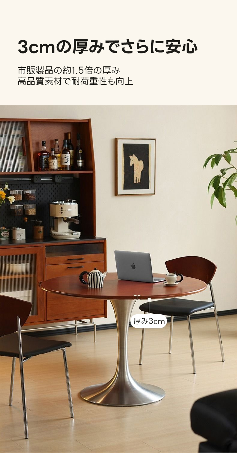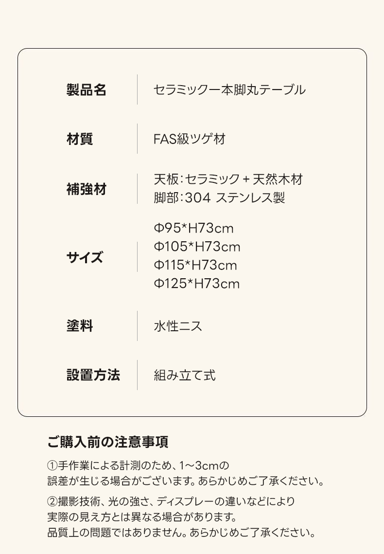 - 【高品質な素材とデザイン】ツゲ材とセラミックを組み合わせた天板は、耐久性と美しさを兼ね備えています。ステンレス製の一本脚は安定感を提供し、長期間使用しても変形しにくいです。ヴィンテージ風のデザインがどんなインテリアにもマッチします。