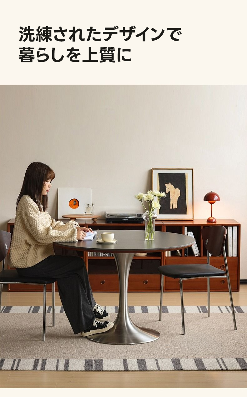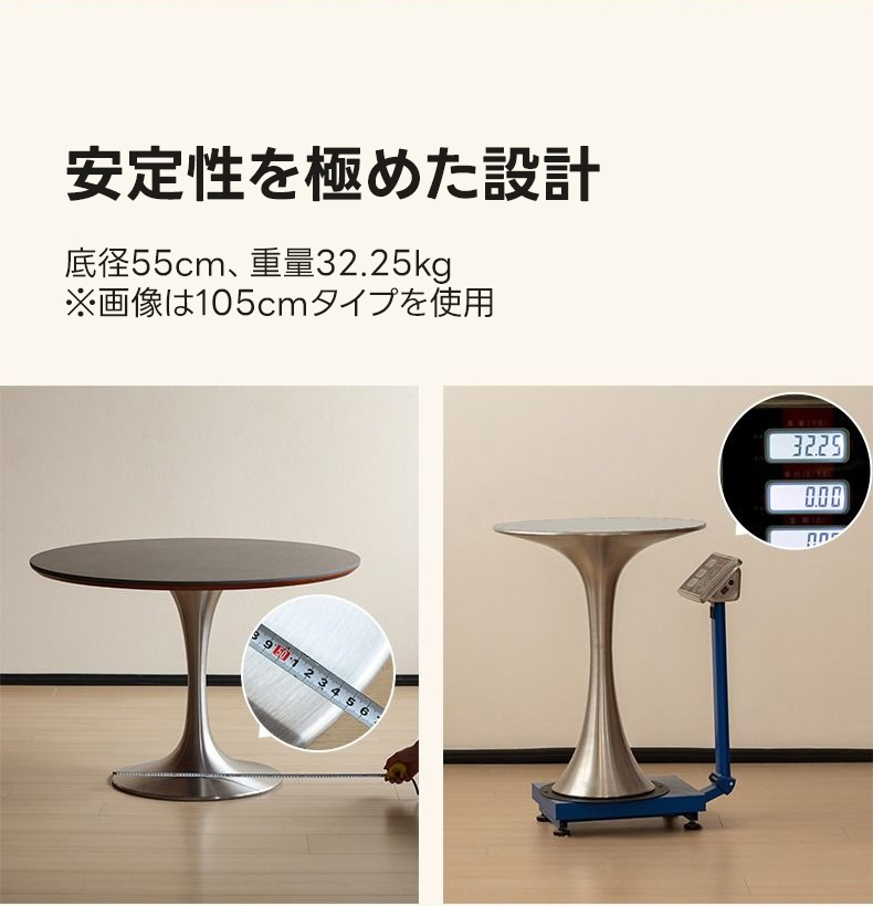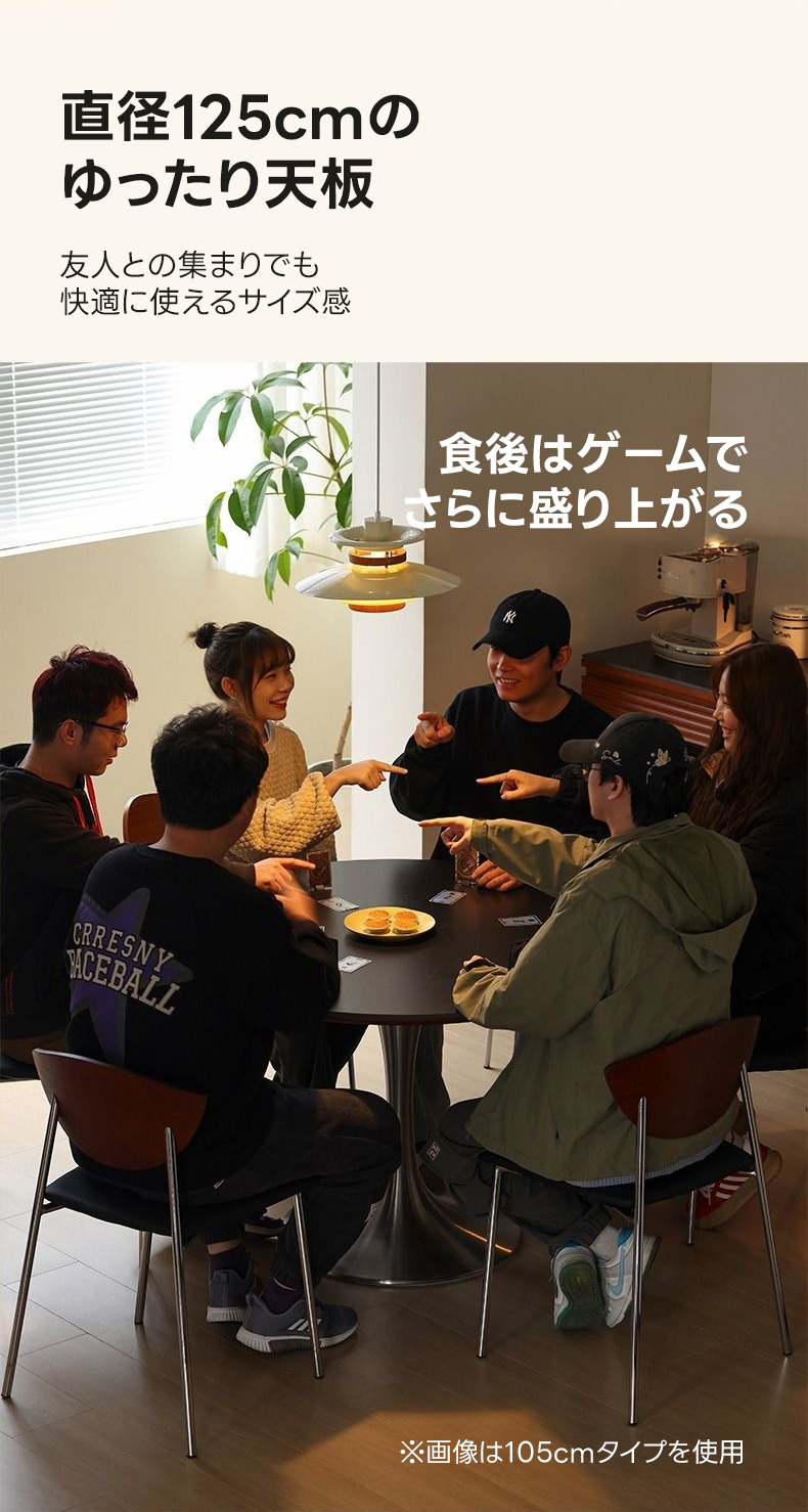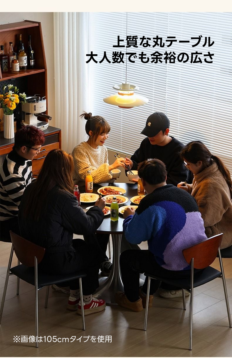 - 【多様なサイズと用途】直径95cmから125cmまでの4つのサイズがあり、カップルやファミリー、一人暮らしの方にも最適です。飲食店や美容室のテーブルとしても活用でき、様々なシーンで活躍します。