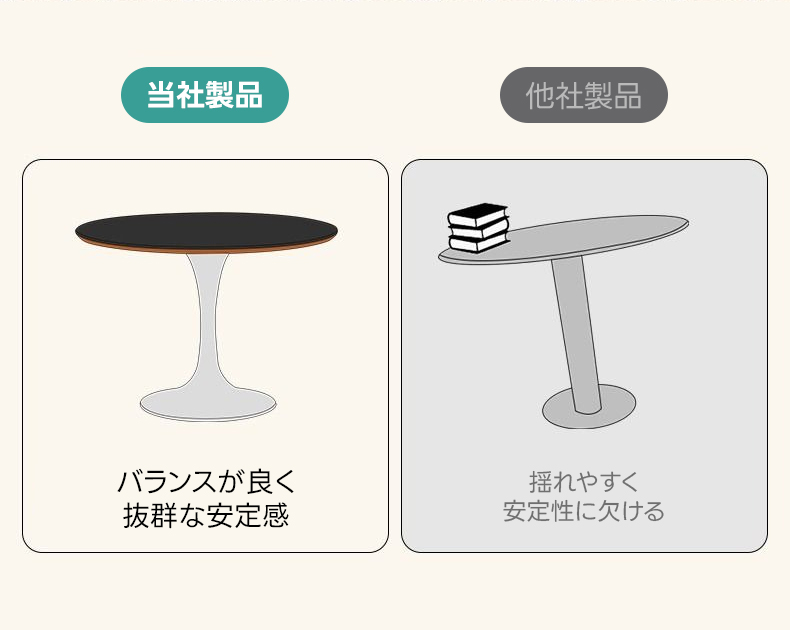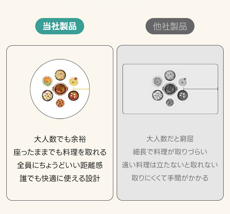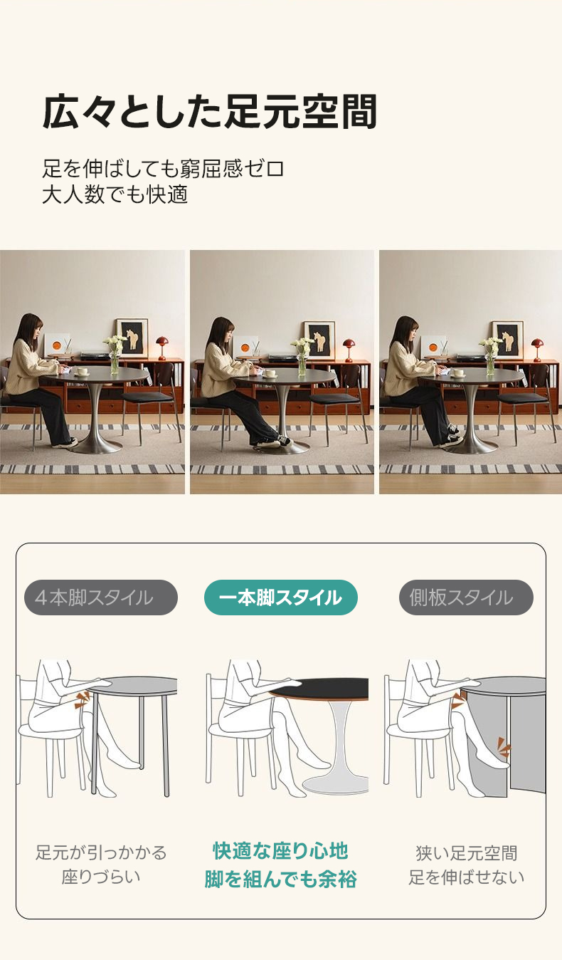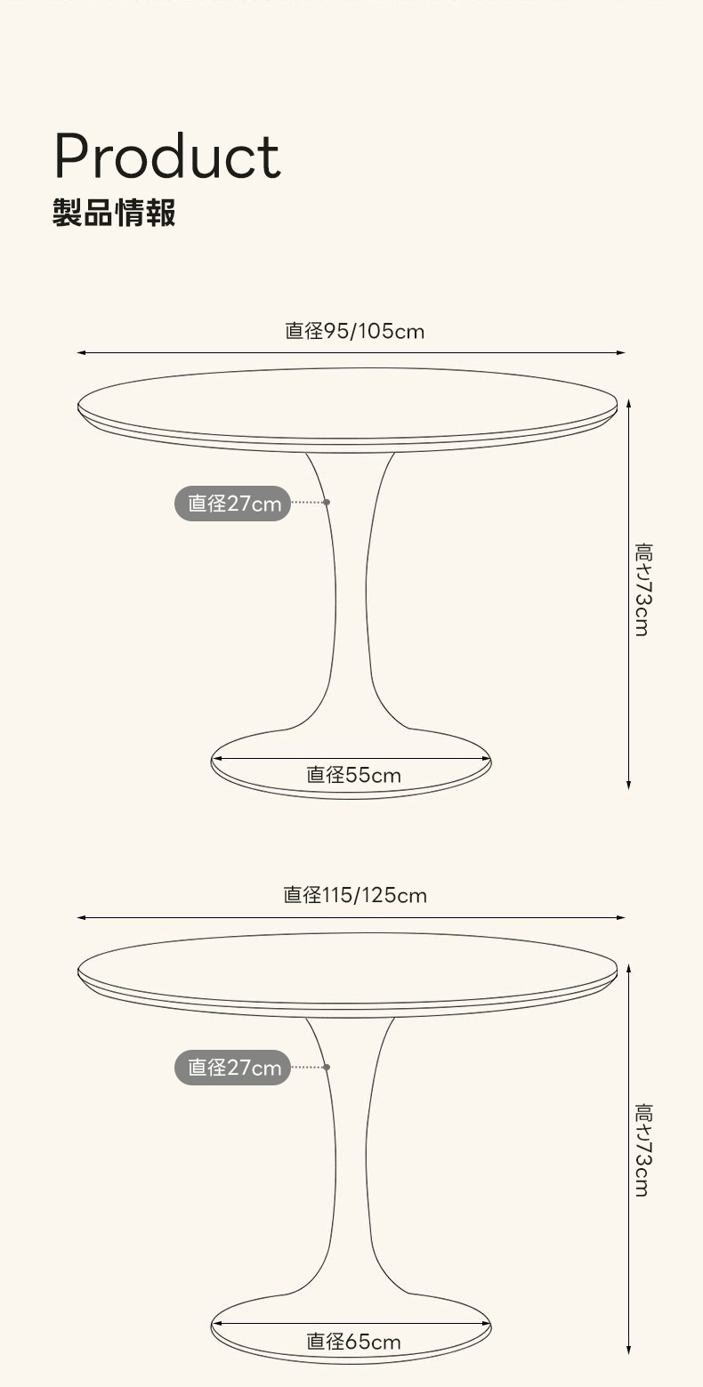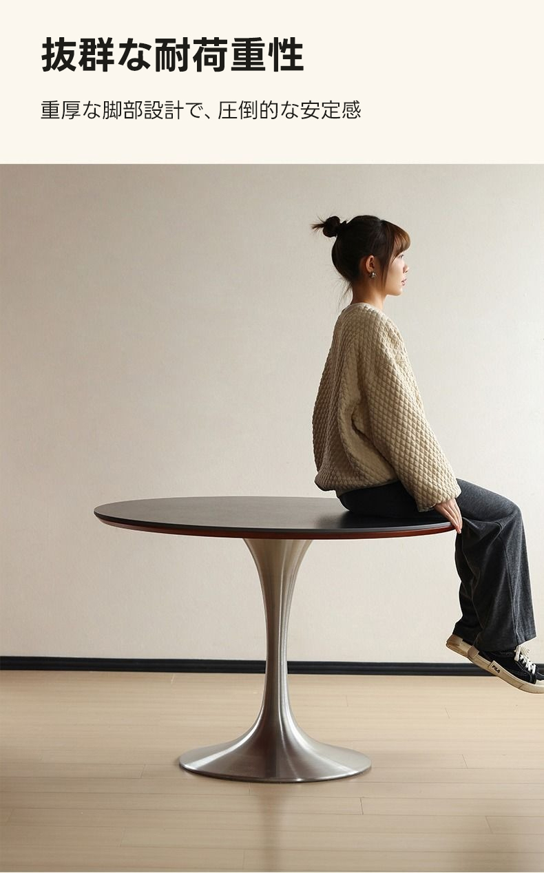 - 【多様なサイズと用途】直径95cmから125cmまでの4つのサイズがあり、カップルやファミリー、一人暮らしの方にも最適です。飲食店や美容室のテーブルとしても活用でき、様々なシーンで活躍します。