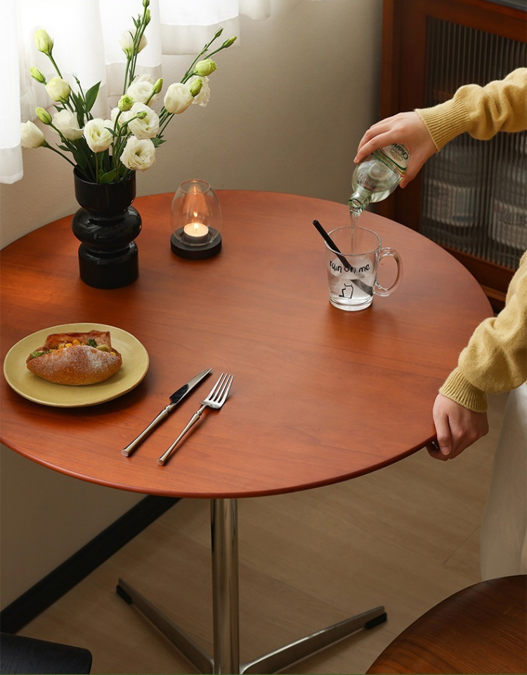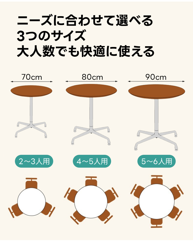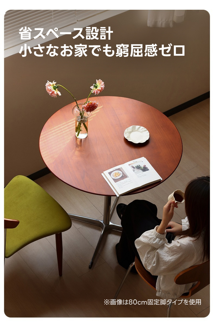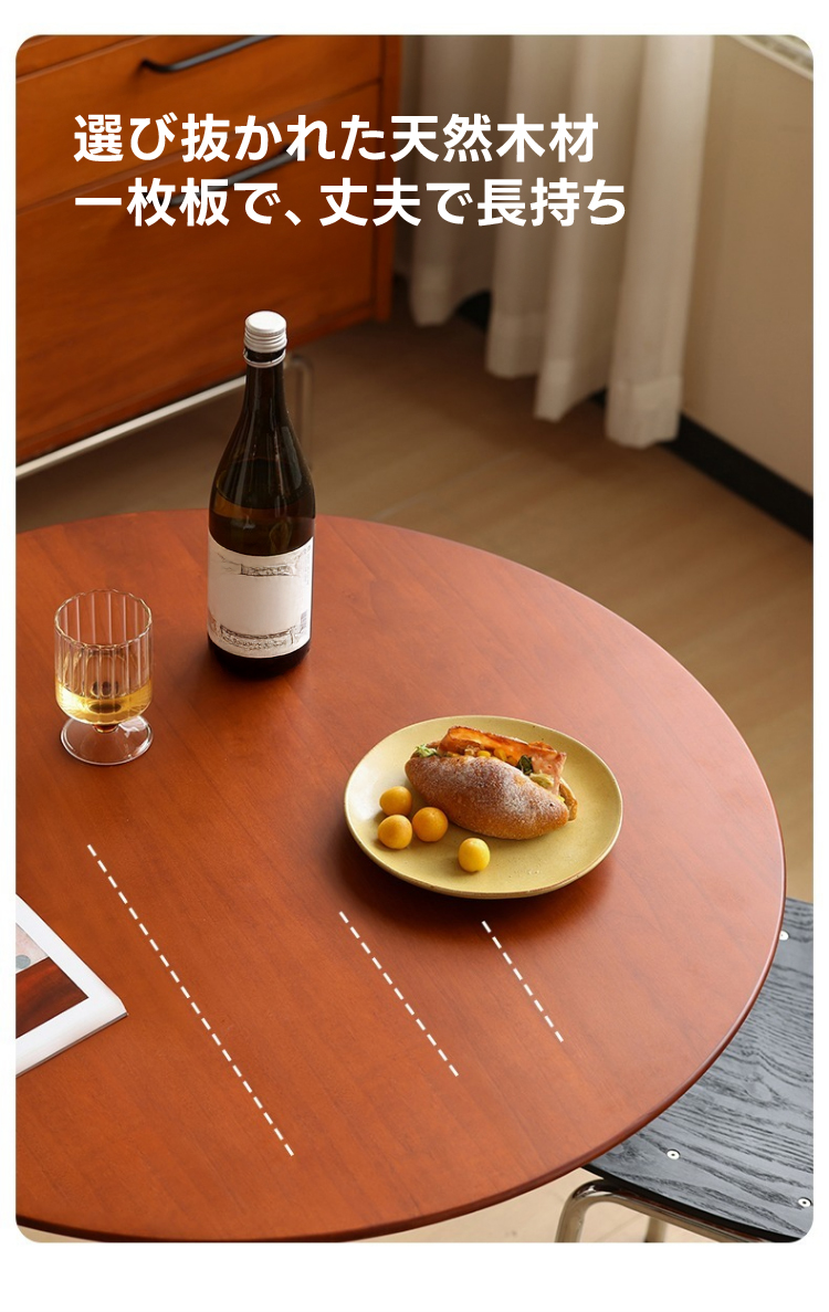 - 【多機能なダイニングテーブル】:ツゲ材を使用したヴィンテージ風ダイニングテーブルは、直径70cm、80cm、90cmの3サイズ展開で、カップルやファミリー、一人暮らしに最適です。省スペース設計で、どの方向からでも使いやすく、狭いスペースでも圧迫感がありません。