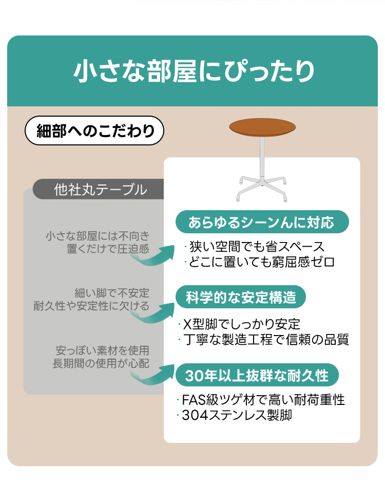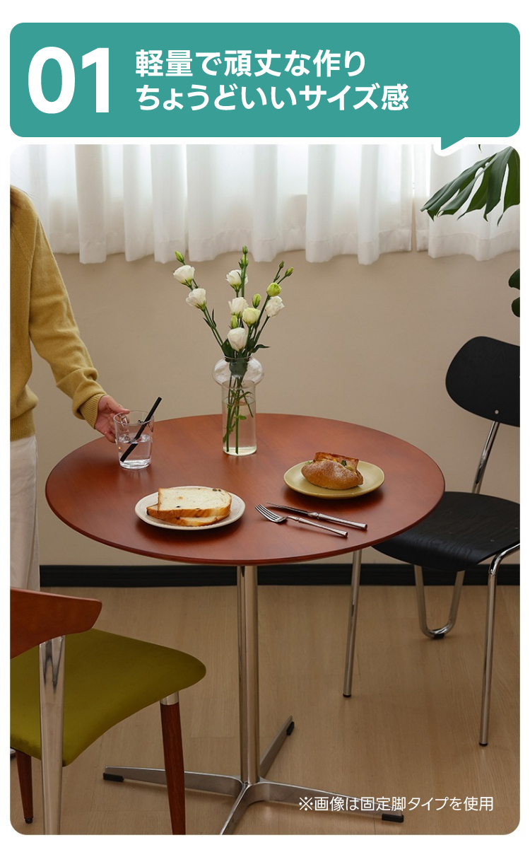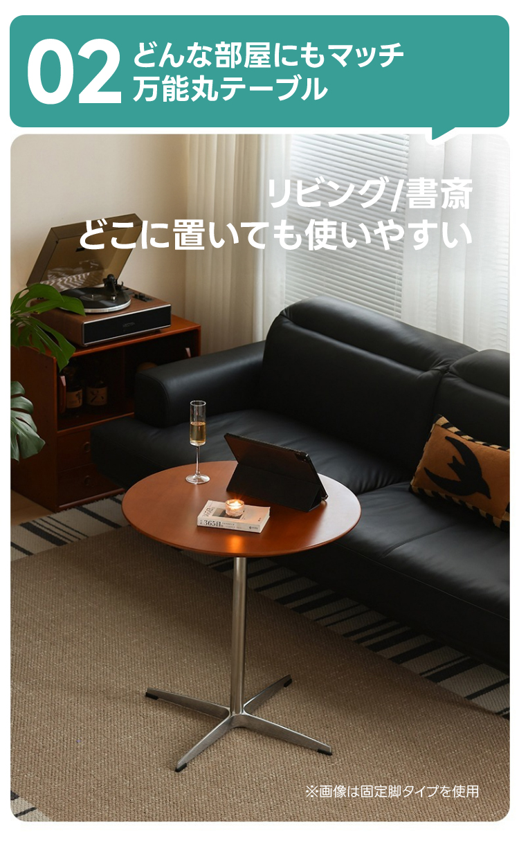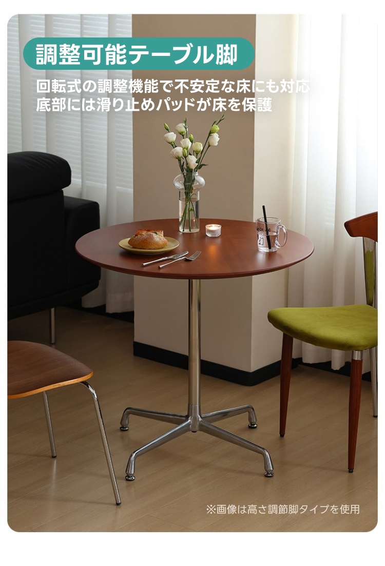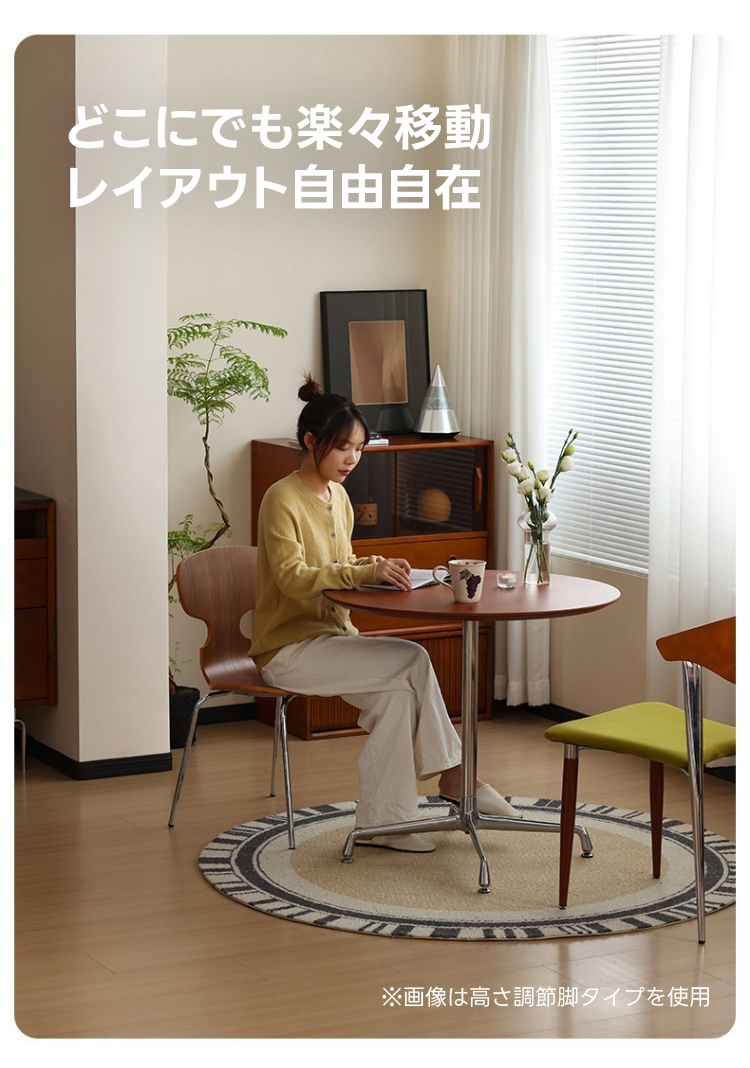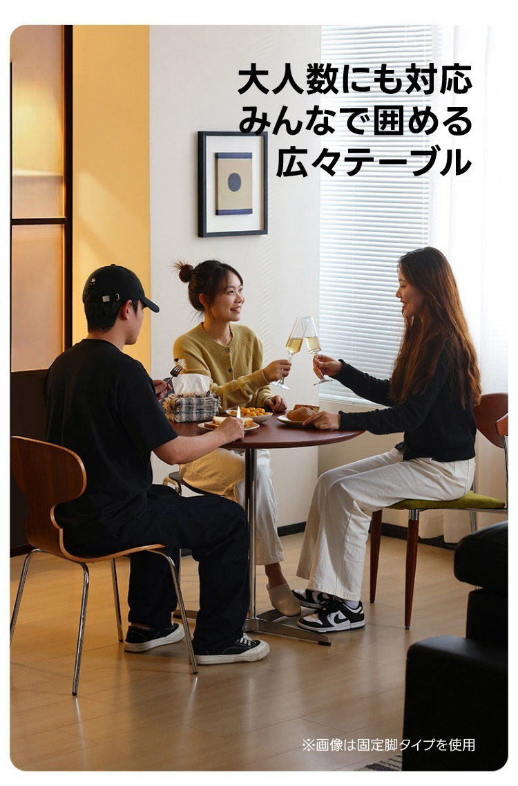 - 【快適な使用体験】:丸テーブルのため、どの方向からでも使いやすく、狭いスペースでも圧迫感がありません。高さ調節可能な脚部で、安定感を確保しつつ、床を保護する滑り止めパッド付きです。