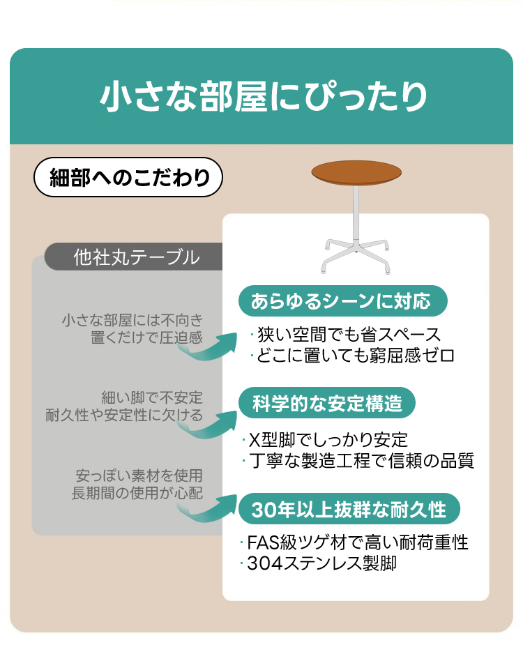 - 【快適な使用体験】:丸テーブルのため、どの方向からでも使いやすく、狭いスペースでも圧迫感がありません。高さ調節可能な脚部で、安定感を確保しつつ、床を保護する滑り止めパッド付きです。