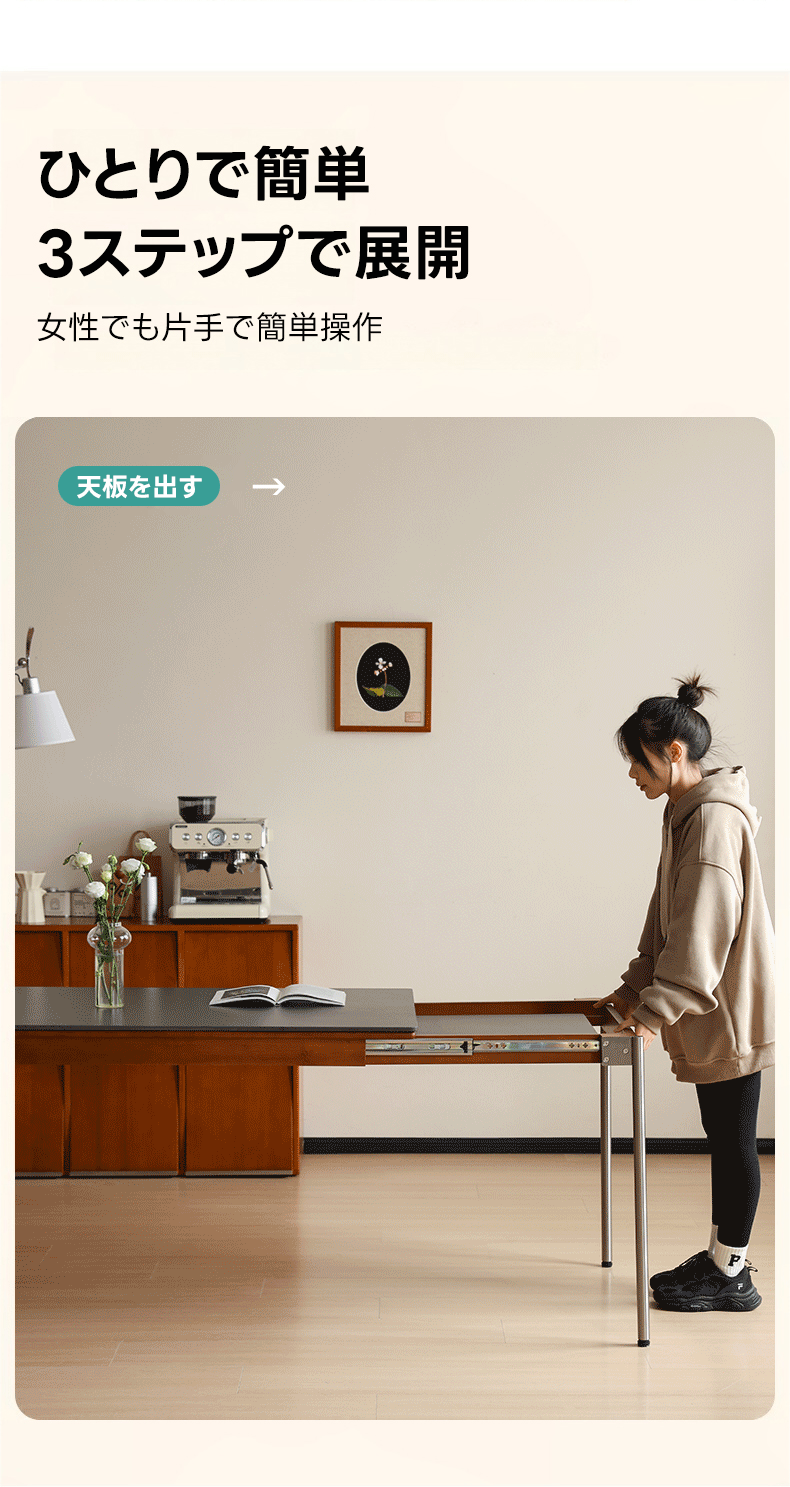 - 【安心の使用感】丸角加工が施されており、安全で手を痛める心配がありません。隠し収納式の天板は、使用しないときにすっきりと収納でき、スペースを有効活用できます。