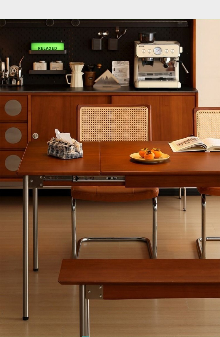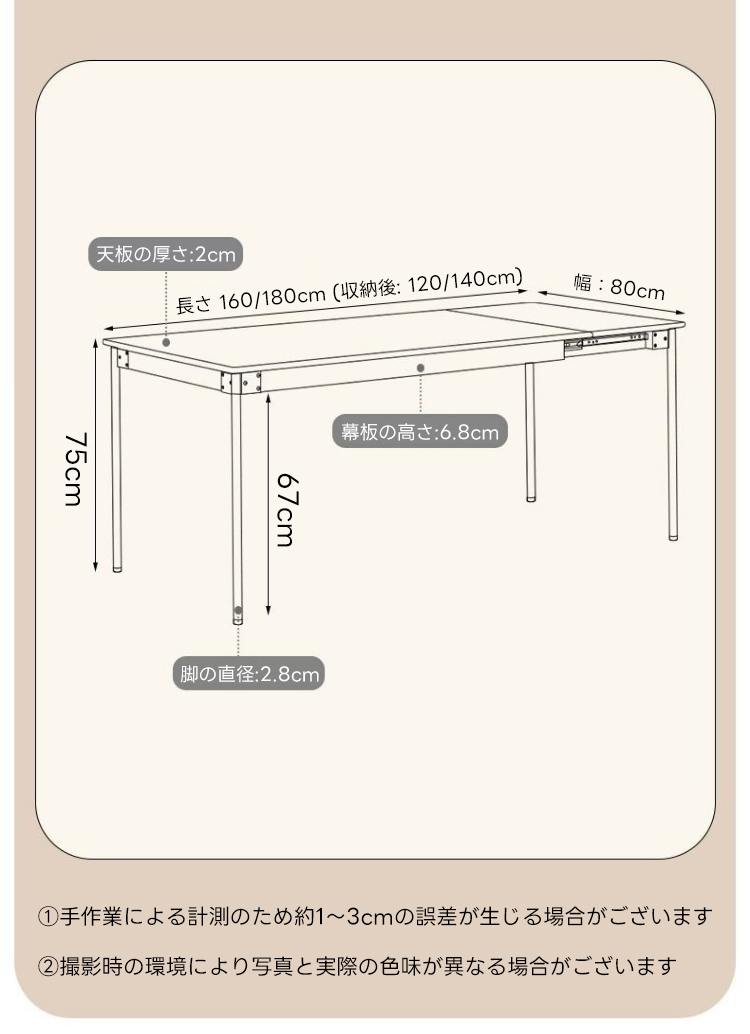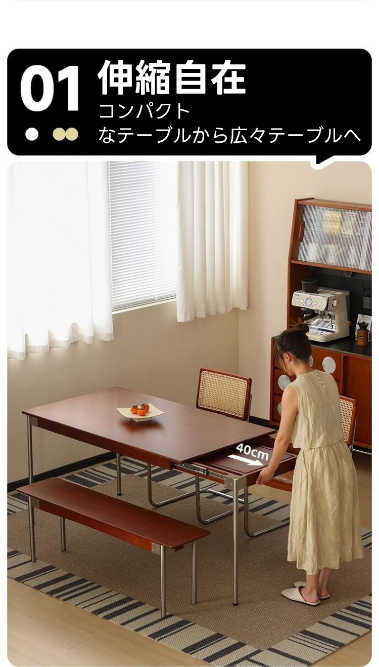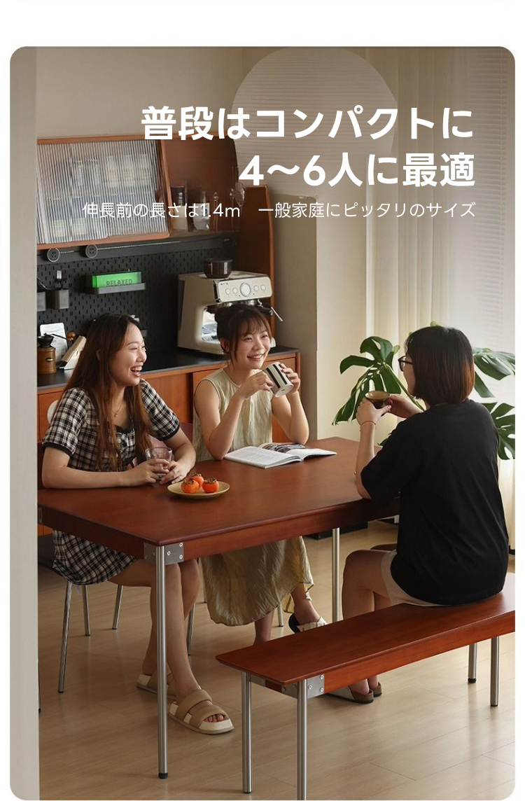 - 【伸縮自在で多様なシーンに対応】このダイニングテーブルは140cmから180cmまで伸縮可能で、急な来客にも対応します。普段はコンパクトに収納でき、必要に応じて広げることができます。これにより、スペースを有効活用し、さまざまなシーンで活躍します。