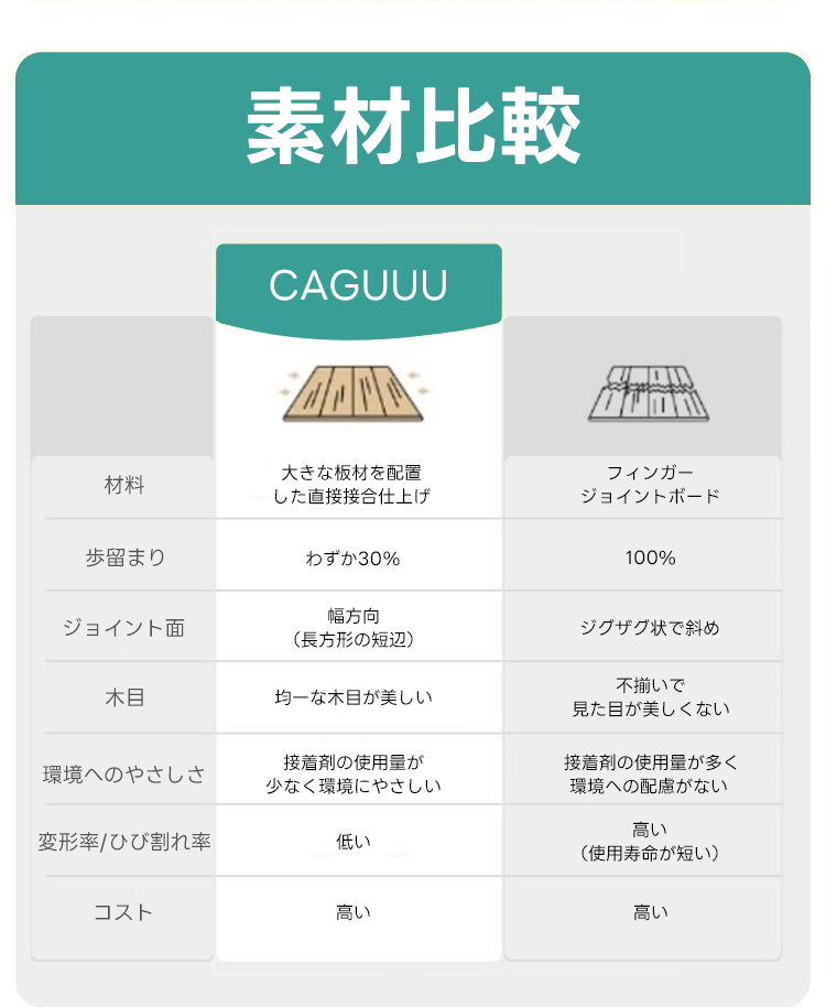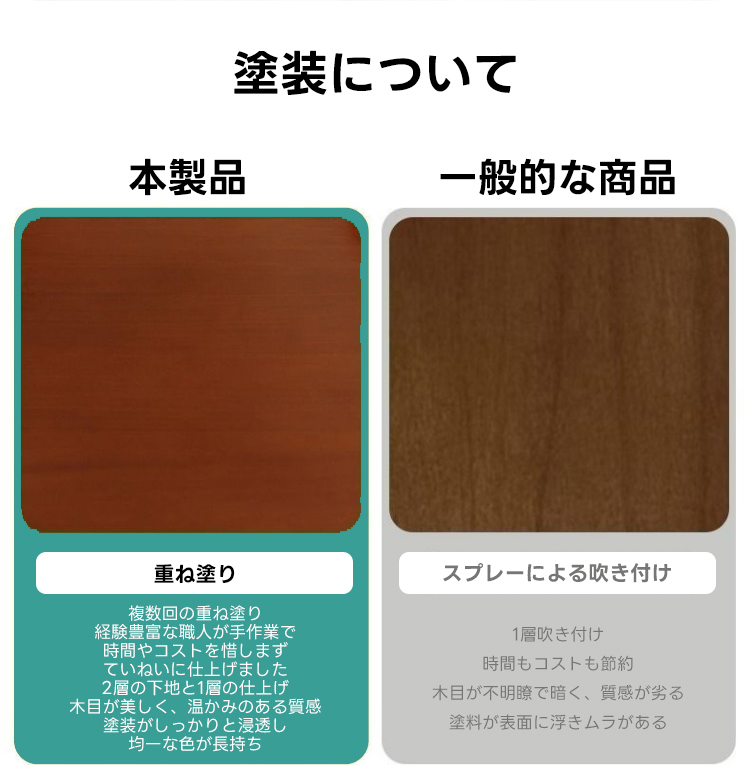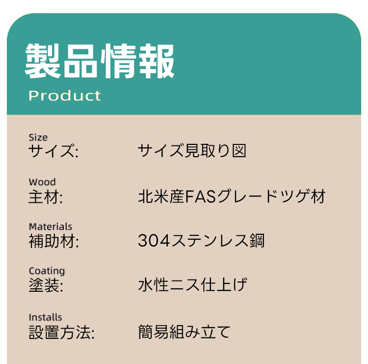 - 【高品質な素材と設計】北米産FASグレードのツゲ材を使用し、美しい木目と高い耐久性を誇ります。補助材には304ステンレス鋼を使用し、錆びにくく長持ちします。さらに、環境に優しい水性ニス仕上げで安全性も高いです。