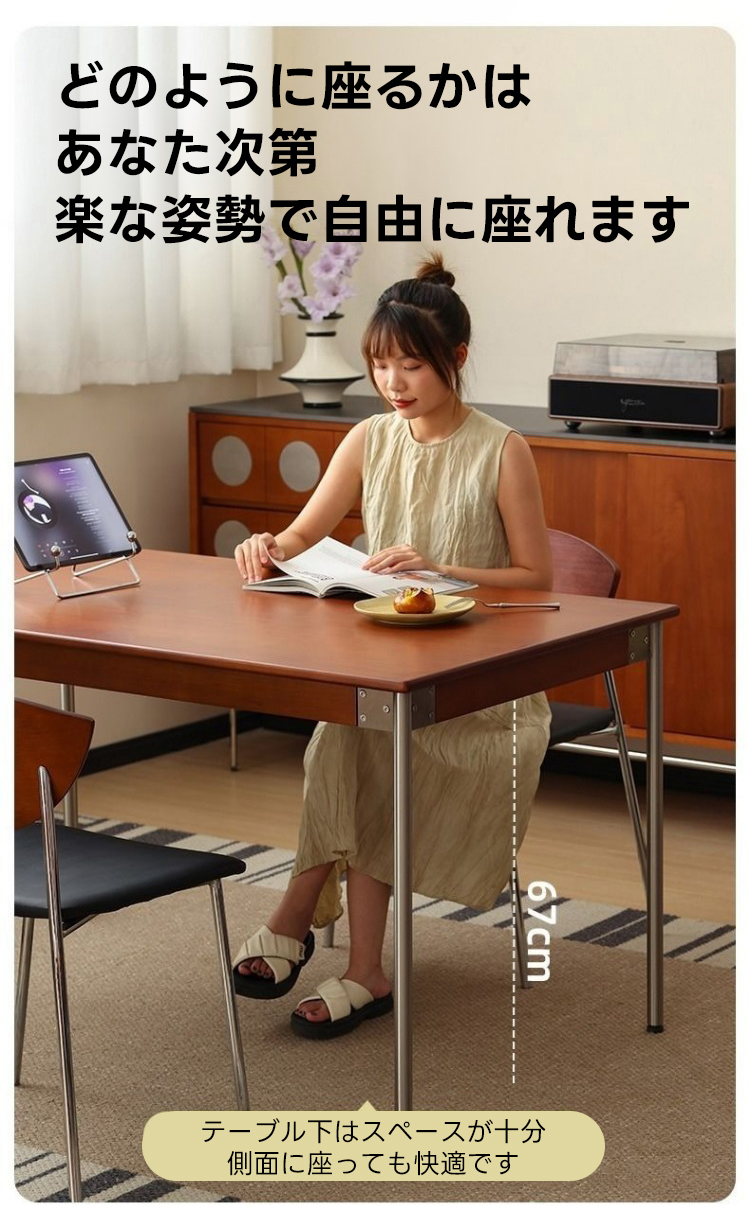 - 【簡単な組立と快適な使用感】簡易組立式で、誰でも手軽に設置できます。テーブルの縁は丸みを帯びたデザインで、長時間使用しても腕が痛くなりません。調節可能なフットパッドが付いており、床の段差にも対応可能です。