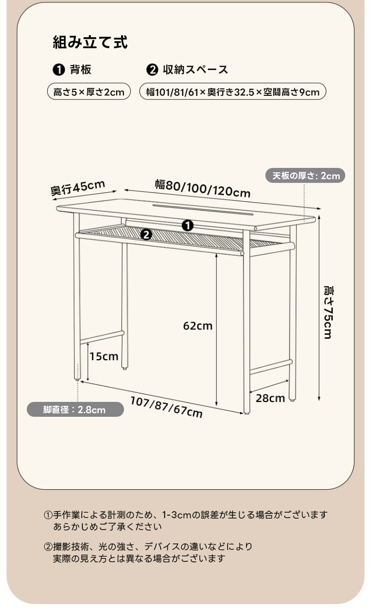 - 【ユーザーに優しいデザイン】:配線用のくぼみがあり、ケーブルをすっきりとまとめることができます。幅は80cm、100cm、120cmの3種類から選べ、どんなスペースにも対応可能です。組立品としてお届けし、簡単に組み立てることができます。