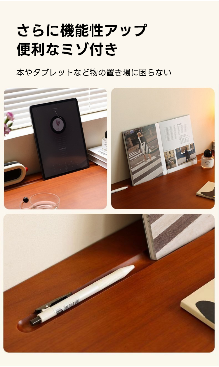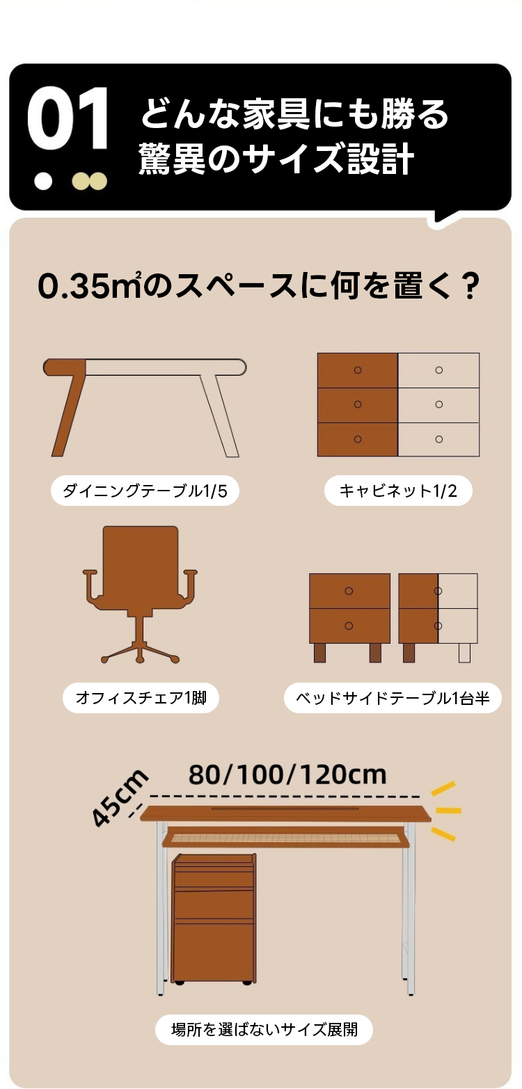 - 【多様な使用シーンに対応】:一人暮らしの方やコンパクトなスペースに最適なこのデスクは、寝室やホームオフィスでの使用にぴったりです。ベージュの色合いが落ち着いた雰囲気を演出し、どんなインテリアにも調和します。オープン型の収納スペースで、書類や小物を整理整頓できます。
