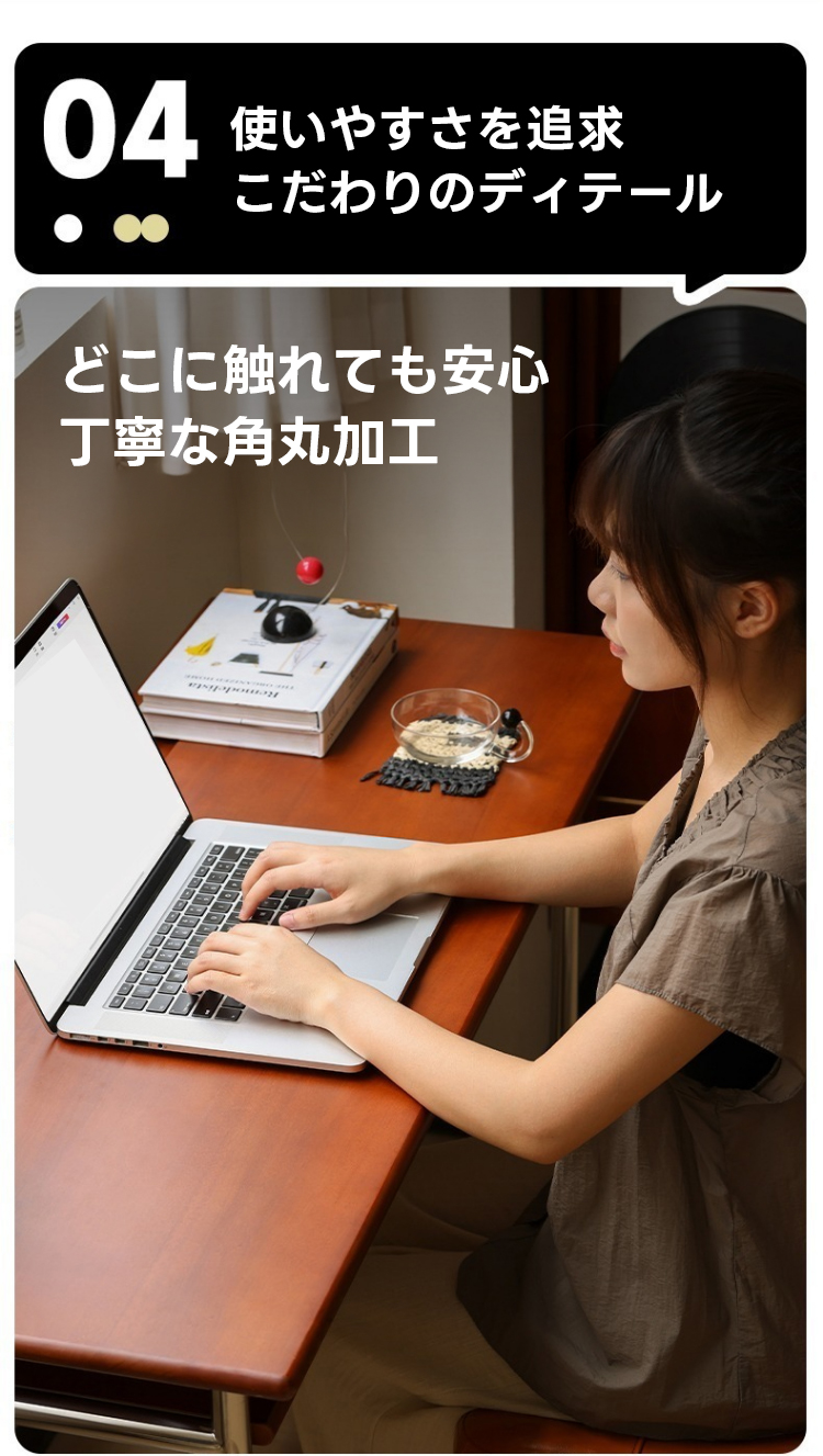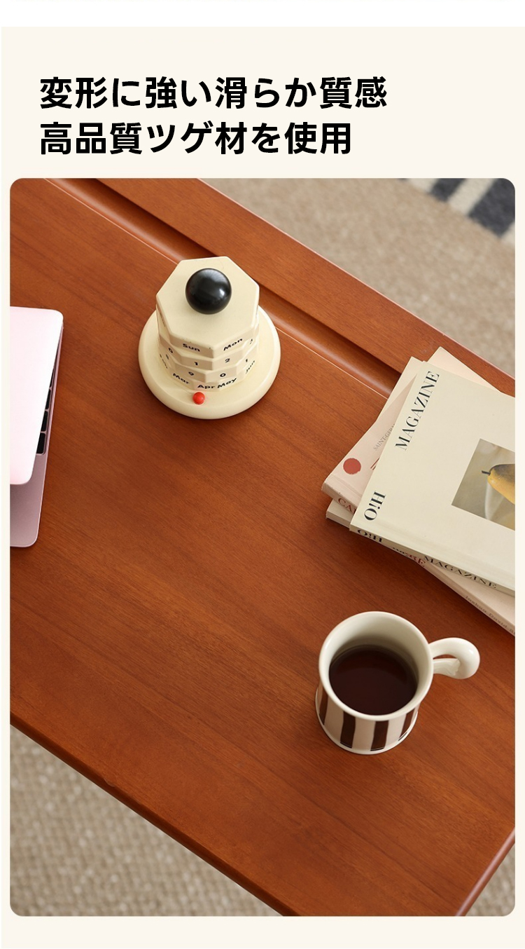 - 【高品質な素材と安定した構造】:北米産の高品質ツゲ材を使用し、耐久性が高く、手触りが滑らかです。ステンレス製の脚はH型構造で、安定感があり、長期間使用してもガタつきません。ラウンドエッジ加工により、長時間の作業でも手が疲れにくい設計です。