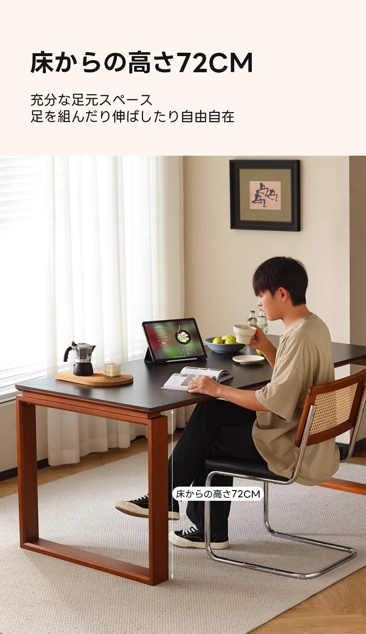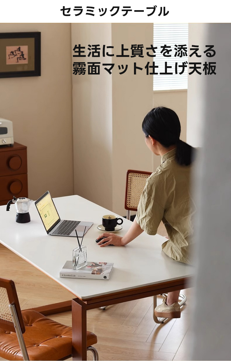 - 【多機能セラミックダイニングテーブル】ツゲ材木製脚とセラミック天板を組み合わせたこのダイニングテーブルは、耐熱性、耐火性、耐スクラッチ性を備え、日常使用に最適です。調整可能な脚部により、使用シーンに応じた最適な高さを設定できます。